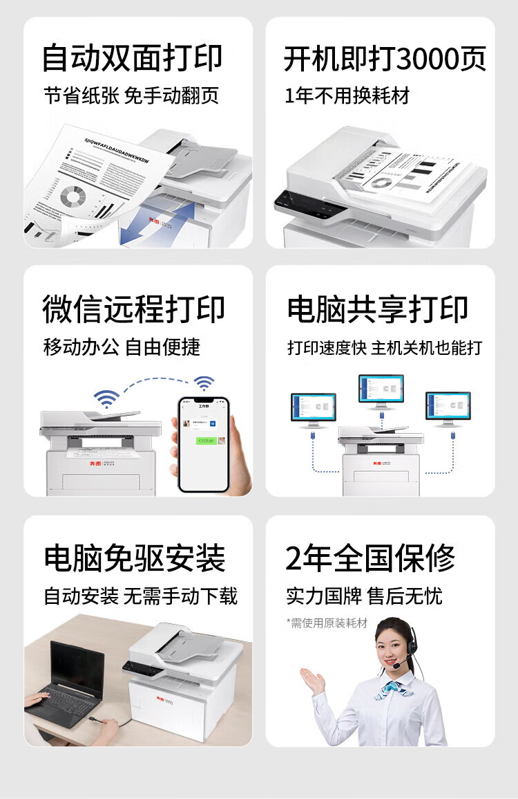我们是办公室用,选择这款就是看中它功能齐全,收到货打印了几百页挺好用的,打印很顺畅也很清晰,电脑手机都方便使用,后面用的好,耗材也会来买的。
