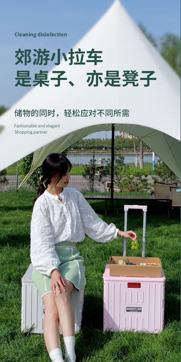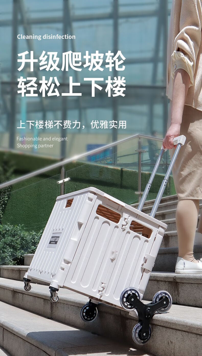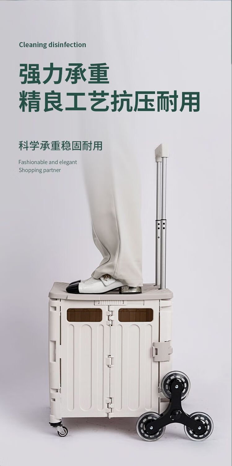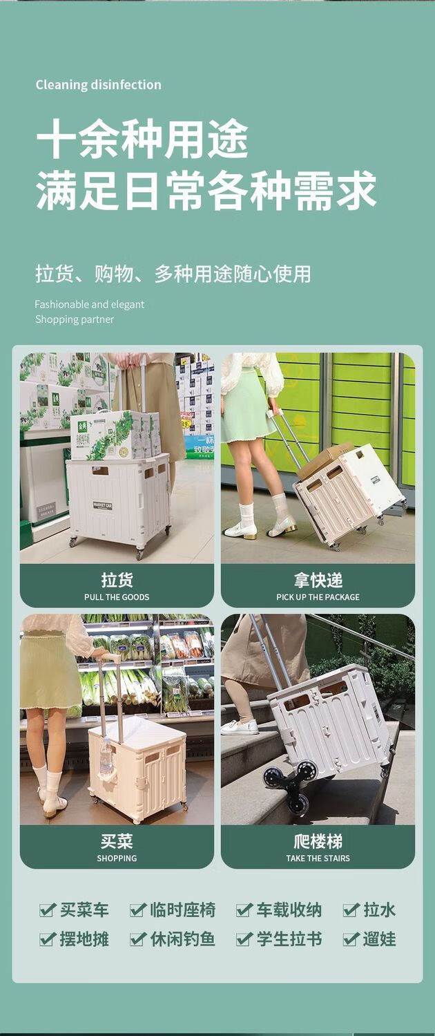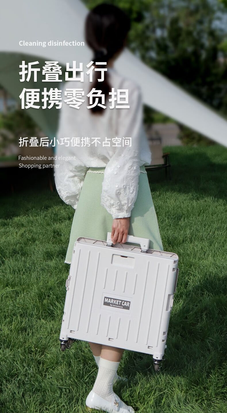 柏潮买菜小拉车家用拖车折叠购物车露营车户外快递摆摊拉货便携手拉车 奶白色1折叠大容量升级加厚合金 小号四轮车