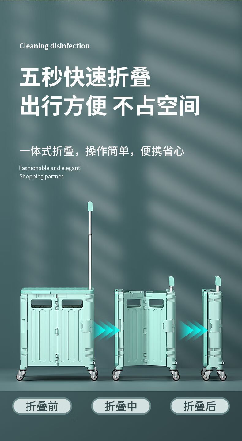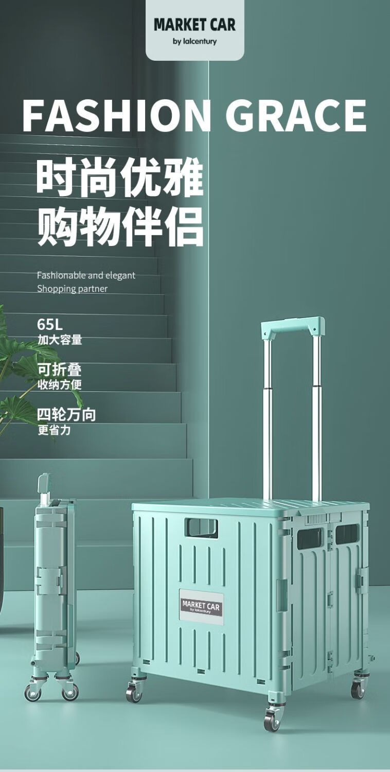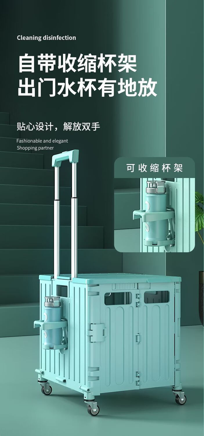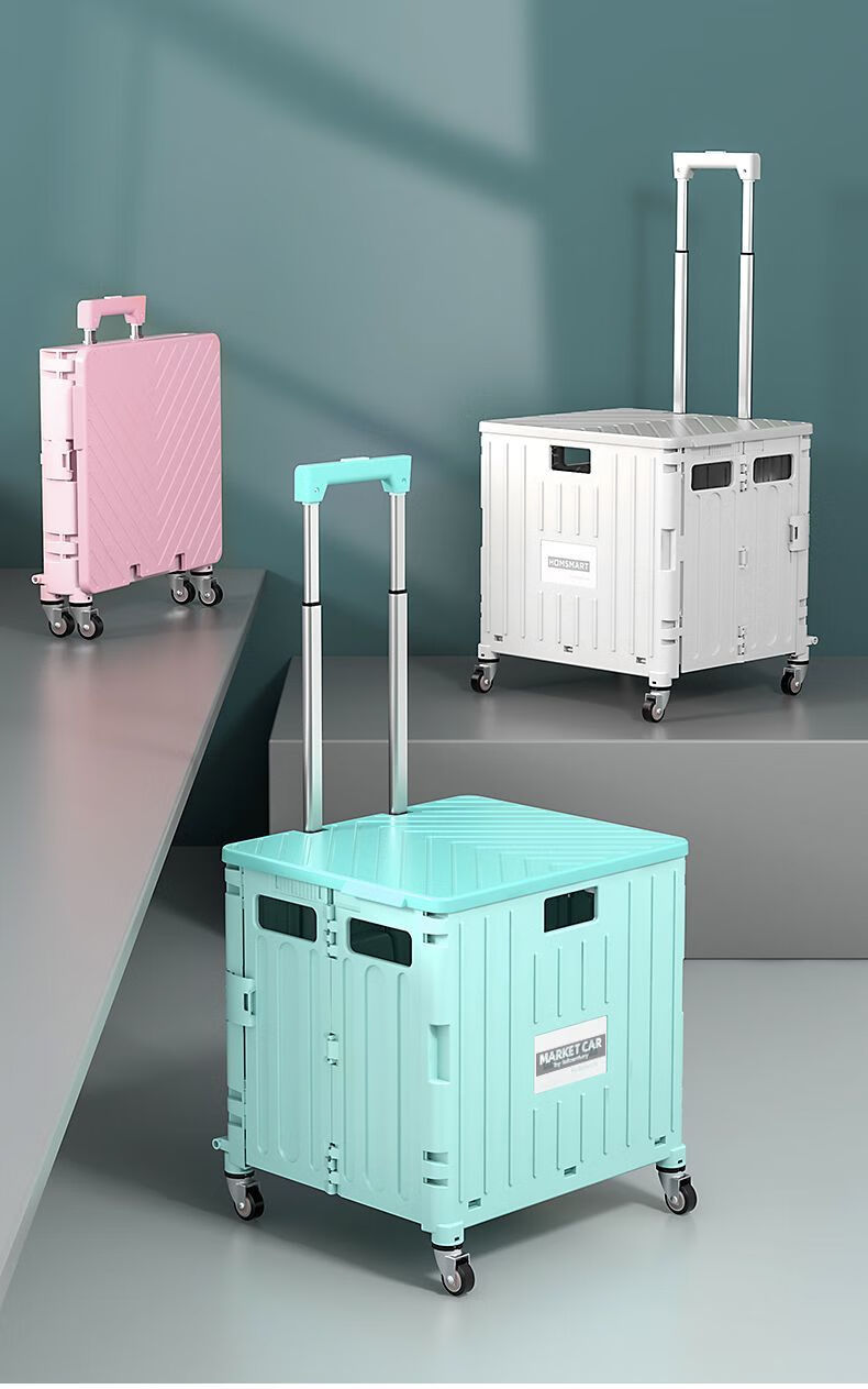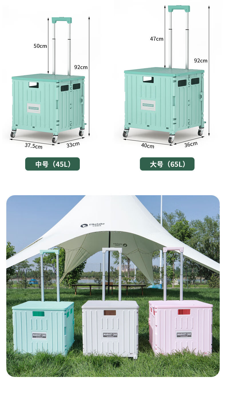 柏潮买菜小拉车家用拖车折叠购物车露营车户外快递摆摊拉货便携手拉车 奶白色1折叠大容量升级加厚合金 小号四轮车