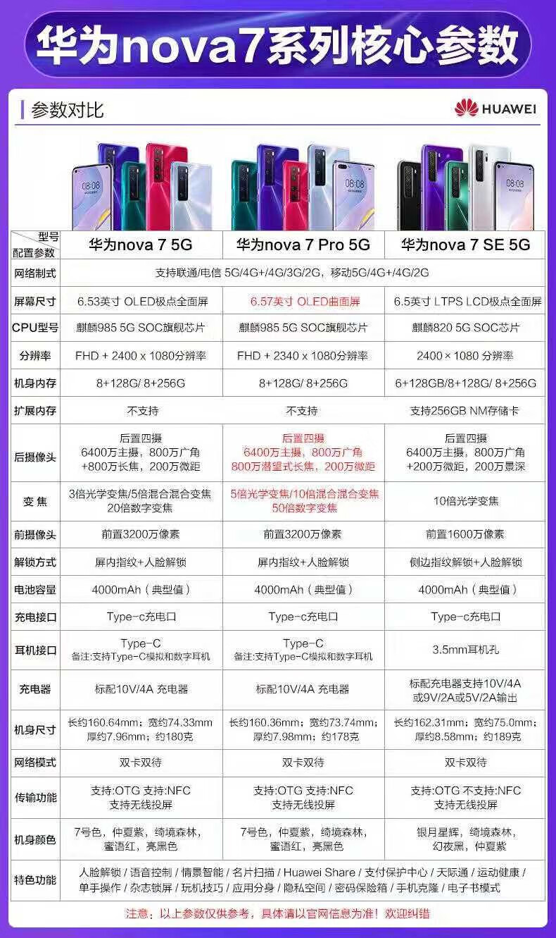 华为Nova7 Pro全网通Nova7 Pro 5G麒麟820芯片nova7 nova7se鸿蒙系统 仲夏紫 nova 7se (直面屏) 8+256G