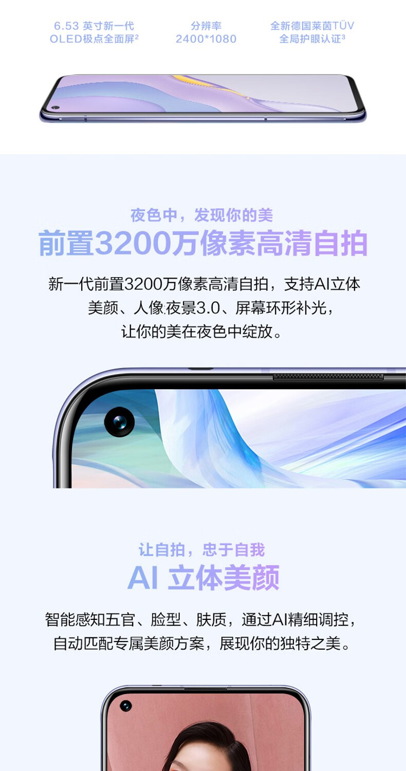 华为Huawei/华为 nova 7 SE 5G 手机麒麟985芯片全网通nova7鸿蒙系统 7号色 8GB+256GB【5G全网通】 nova 7 SE 【5G全网通】侧边指纹