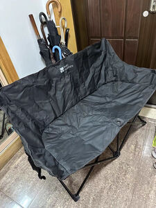 这个椅子 就是两个月亮椅缝一起了 但是胜在收纳面积不大 适合情侣露营用 哈哈哈哈 面料很厚实
