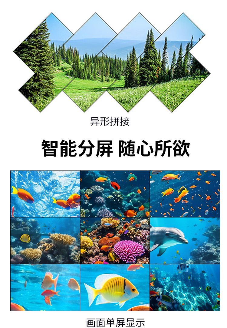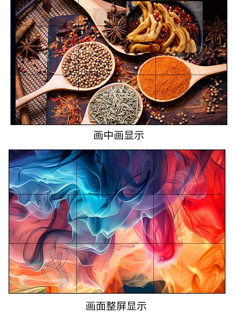嵌入式安装的整体显示效果看着非常好!屏幕也非常高清,又能分屏,又能全屏播,直接加个播放盒子就可以,整体效果超赞