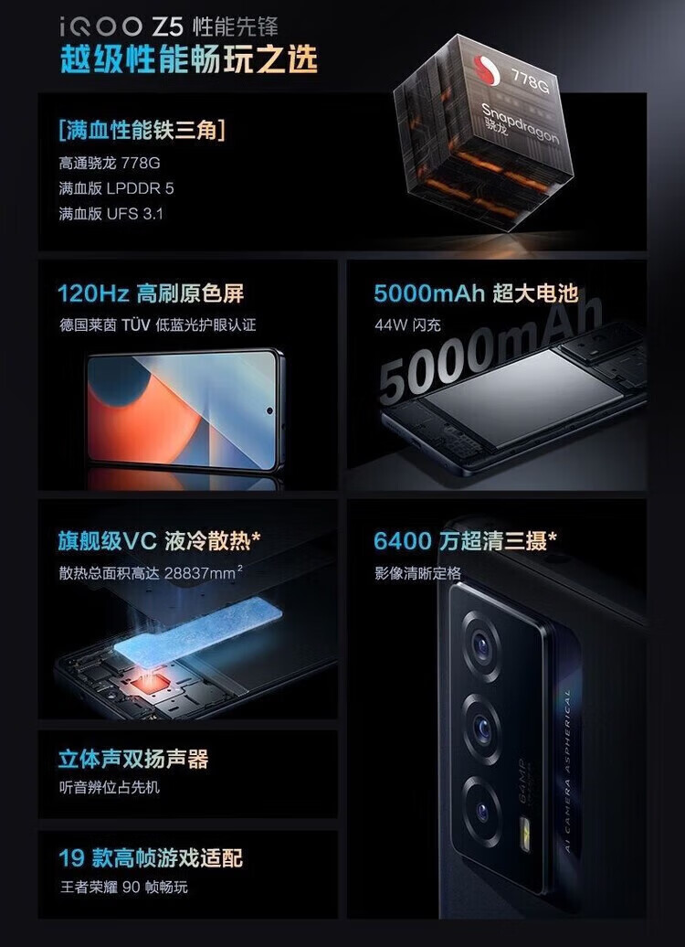 vivo IQOO Z5 全新未拆封未激活+全国联保 骁龙778G 120Hz高刷屏幕 智能拍照美颜游戏电竞手机 造梦空间 8GB+128GB