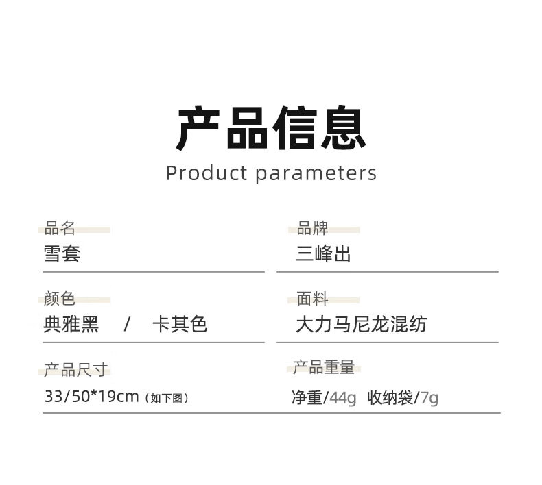 三峰出鞋套雪套户外登山防水防雪防沙耐磨轻量化男女单人护裸脚套