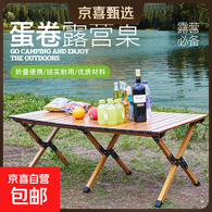 便携折叠露营桌椅野餐桌户外露营碳钢桌子自驾烧烤摆摊旅行轻便桌 150CM木纹蛋卷桌