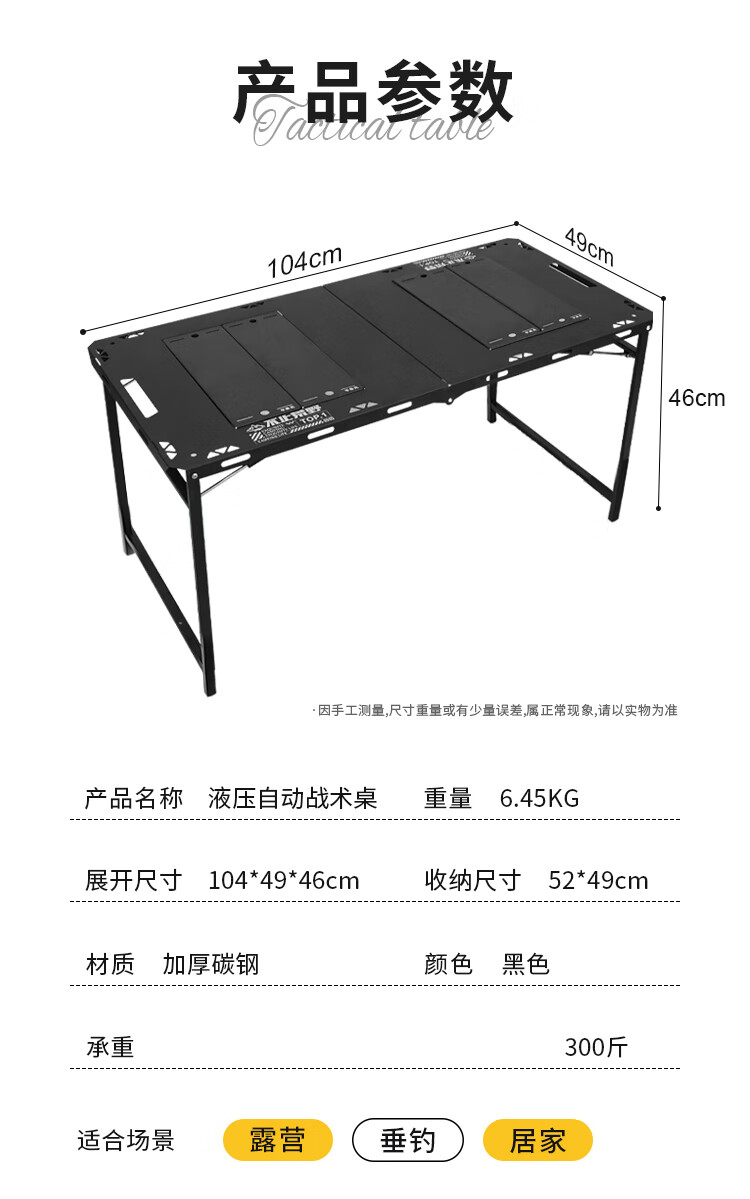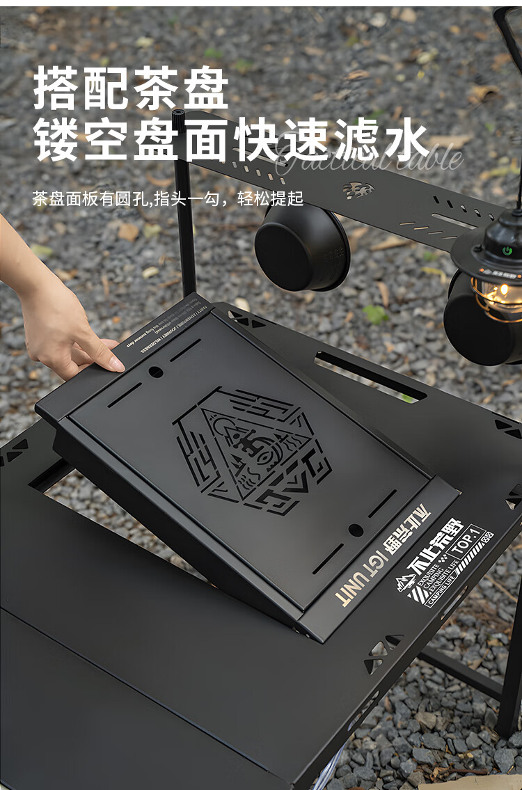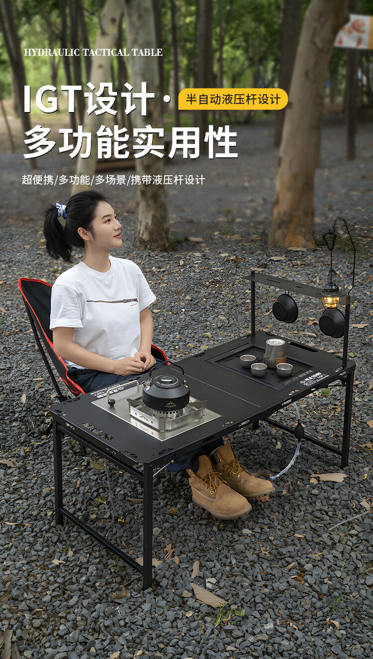 拓村户外igt桌可折叠露营桌多功能单元板拓展便携野外速开战术桌 【暗夜黑】IGT侧桌板