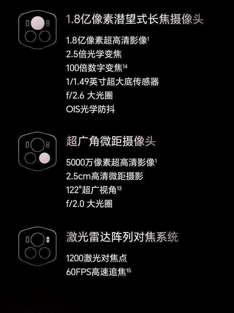 三主摄;光学长焦;潜望式;光学防抖;前置AF