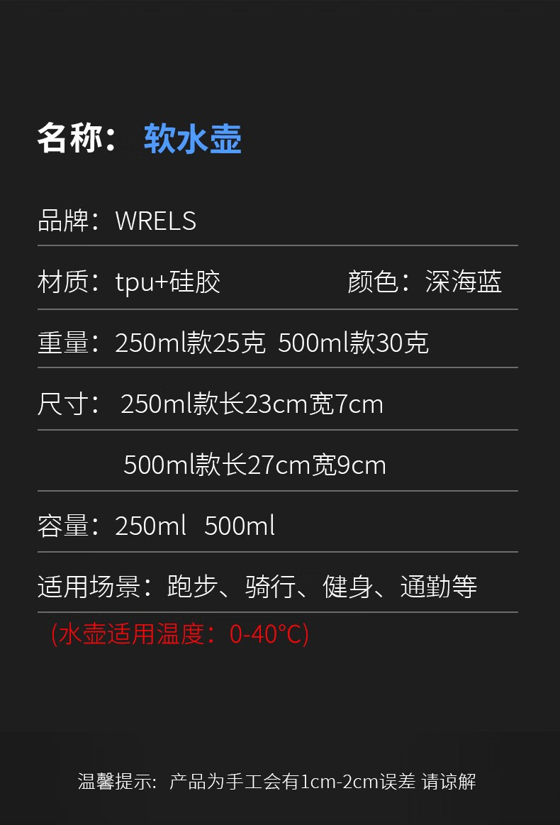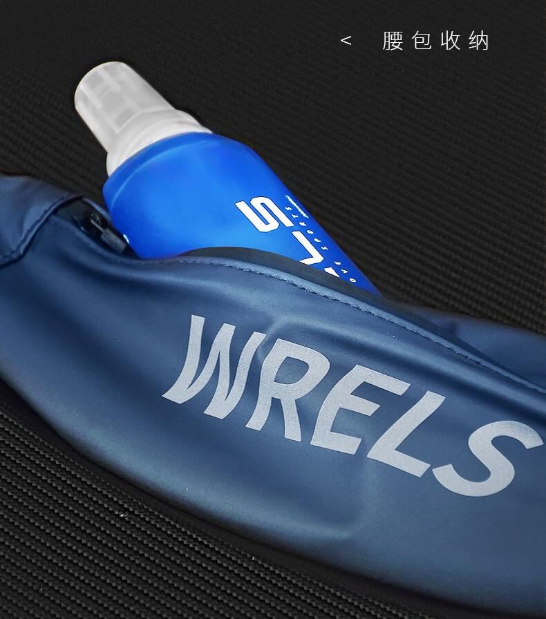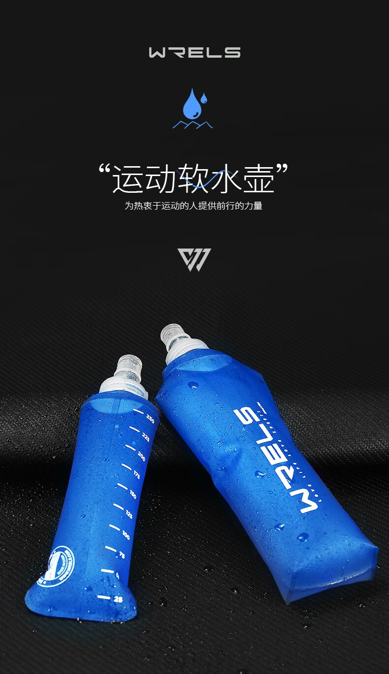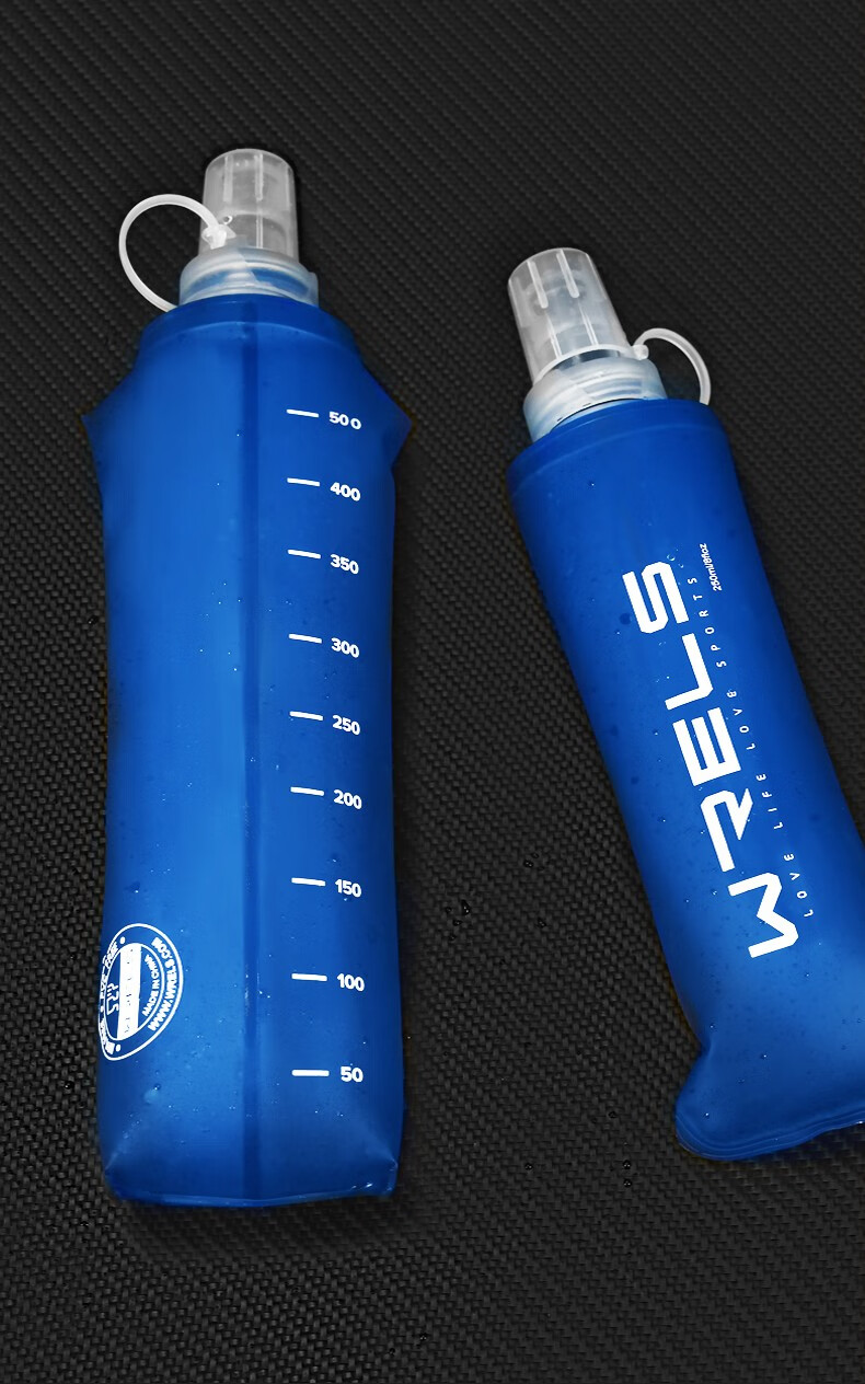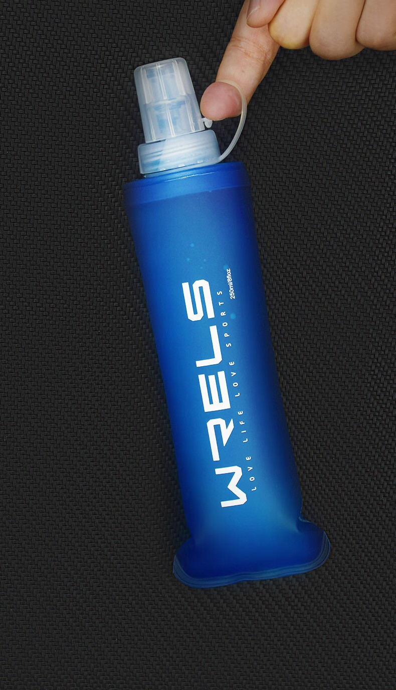 瑞尔士(WRELS) 运动软水壶跑步硅胶软水瓶男女健身便携挤压式折叠水杯越野腰包 深海蓝150ml