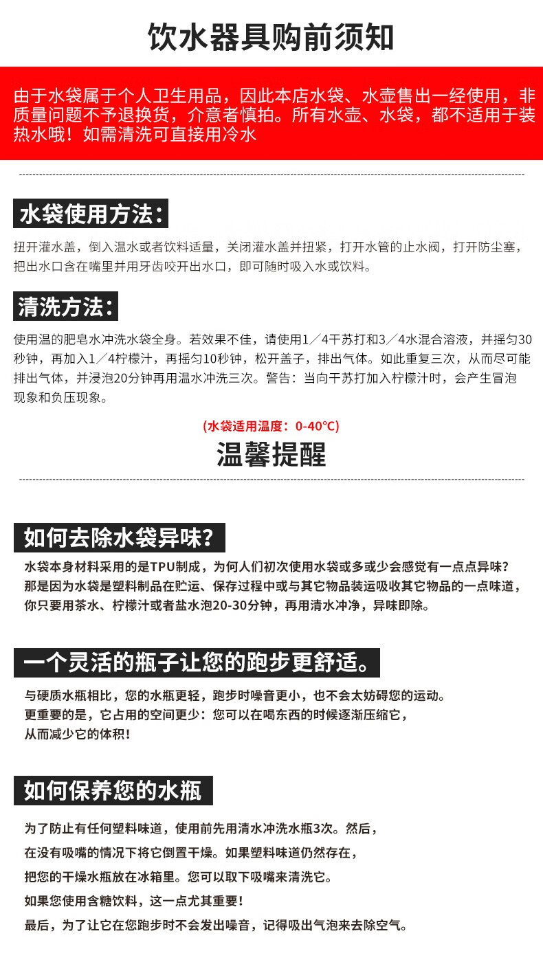 水壶收到了,30公里越野赛需要用到,喝水很方便,买了250ml的,比赛时喝几口就喝完,感觉还是买小了,但是买大了又不方便拿,看个人的需求了