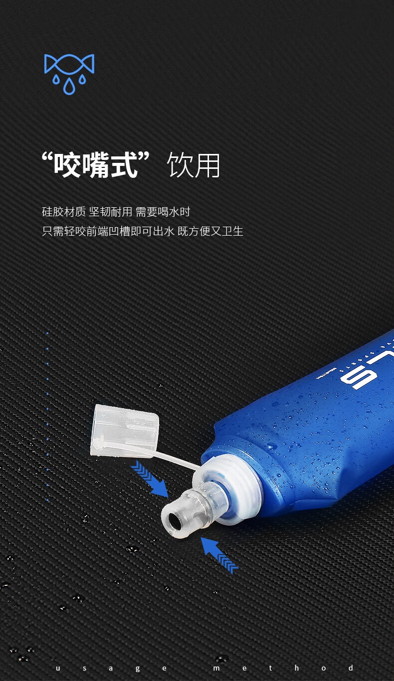 品质很好,壶嘴是硅胶材质,喝的时候咬住壶嘴吸,不漏水,10公里内的补水刚好,之前买了250ml的,两个换着用,便于携带。