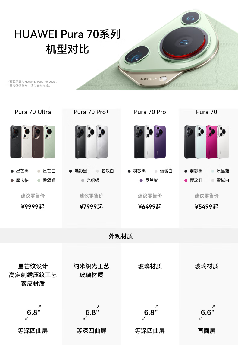 华为(HUAWEI)展机Pura 70 Ultra 陶瓷背板 XMAGE影像手机5G全网通国行正品补贴 香颂绿 16G+512G 赠运费险|详情咨询客服