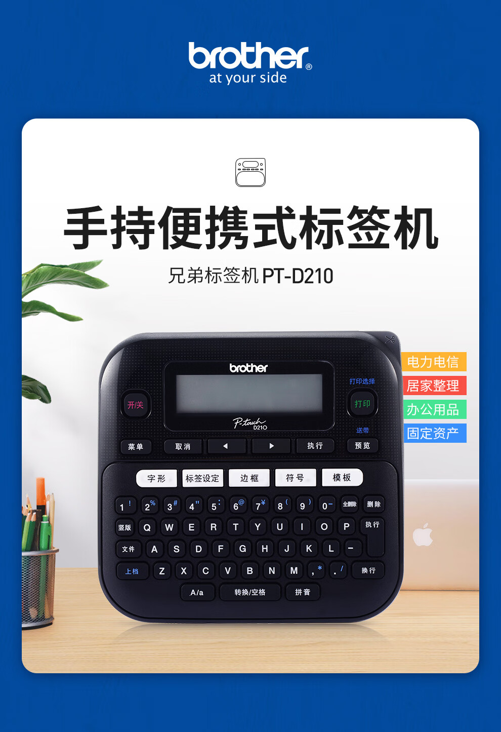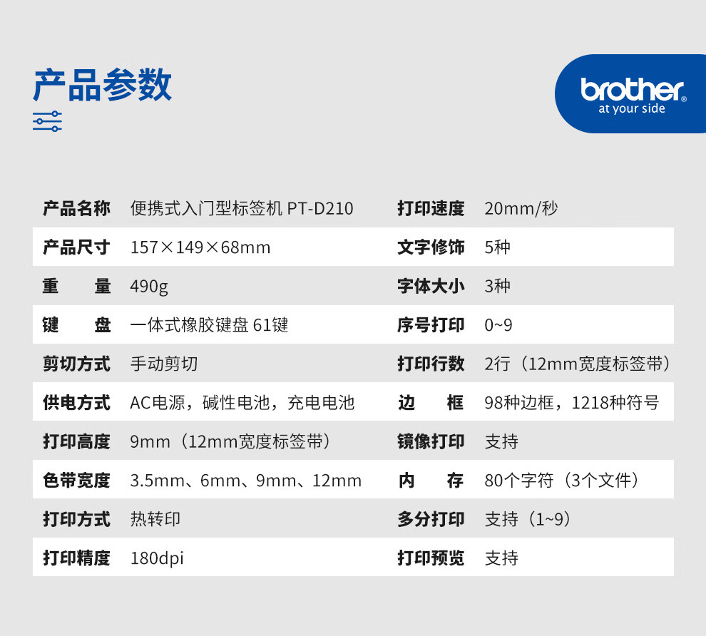 兄弟(brother)标签机商用家用办公不干胶标签线缆标签机便携家用办公打印机 兄弟标签机PT-D210
