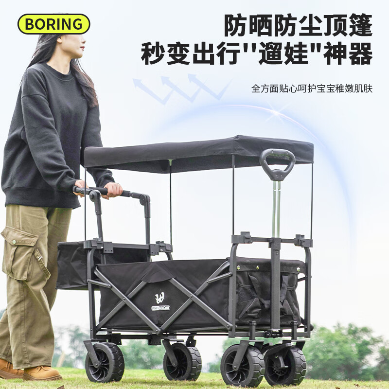 疆屿露营车户外折叠车营地车儿童可躺旅行车遛娃配件选配套餐 黑色遮阳棚+雨棚 聚拢MAX款