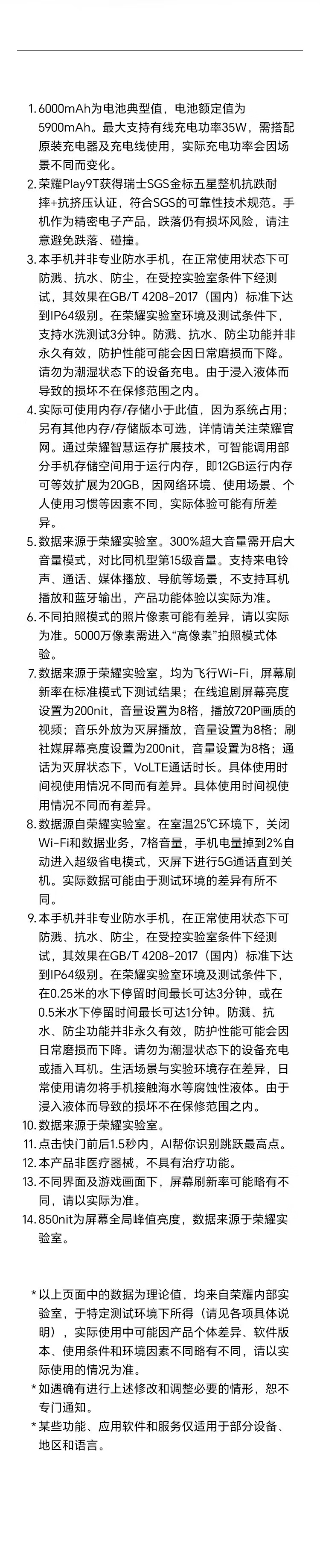 荣耀Power 16+1TB 十面抗摔 AI 5G手机 选购 新款防水抗跌手机Play9T 幻夜黑 12GB+256GB