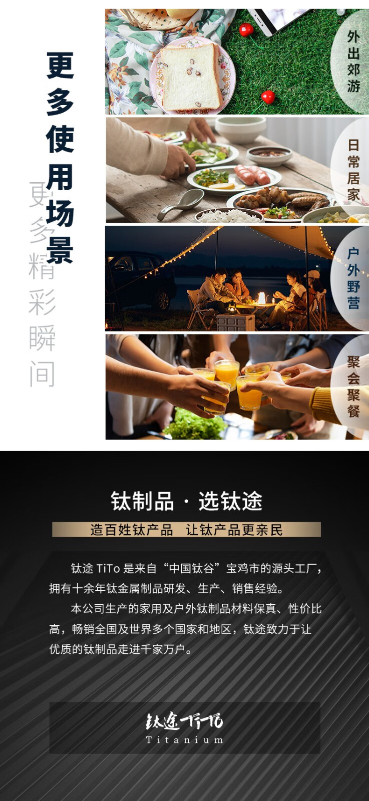 钛途(TITO TITANIUM)纯钛碗露营宝宝儿童吃饭碗双层饭碗户外碗防烫防摔钛碗家用碗新款 纯钛碗-小号-冰花钛色
