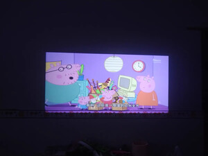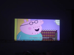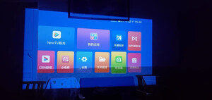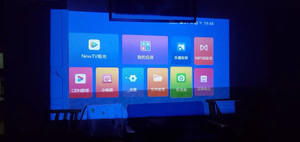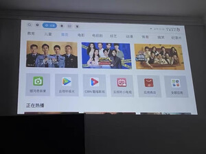 投影仪刚收到,迫不及待的拆箱试了下,感觉机器反应挺快,系统挺流畅,画面也很清晰,对焦速度很多,音质也不差