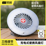 探险者户外露营风扇灯静音电扇夜灯悬挂式便捷式充电吊扇台式驱蚊 露营风扇灯-蓝色【可充电】