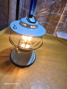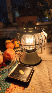 产品材质:金属灯架,玻璃灯罩,我是被它的颜值吸引的,绝对的中国风 光照强度:光线柔和,露营的时候点亮它,氛围感直接拉满 续航时间:续航时间还不知道,还没用 产品重量:露营灯很有分量,做工精细