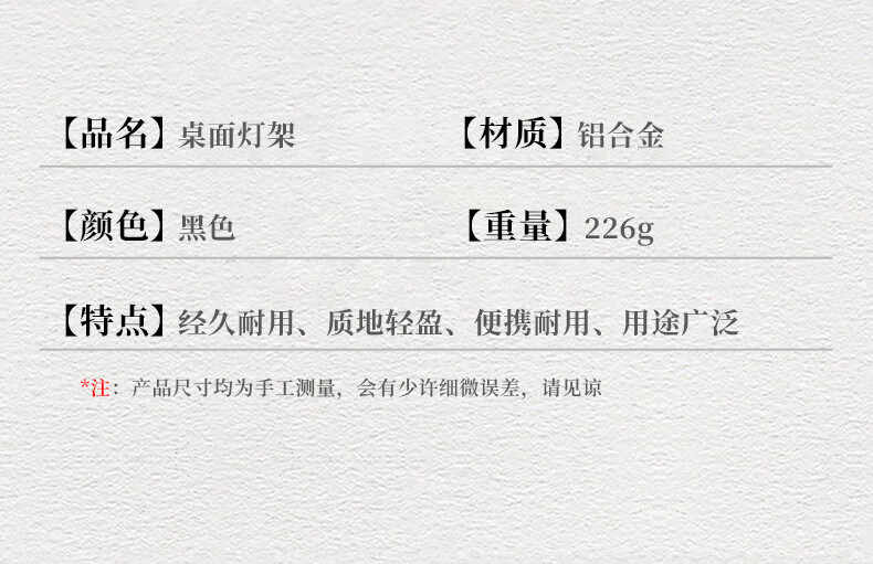 挂架做工精细美观,安装方便,能多方便使用非常好,拿来当摆摊的小灯架很稳,推荐购买