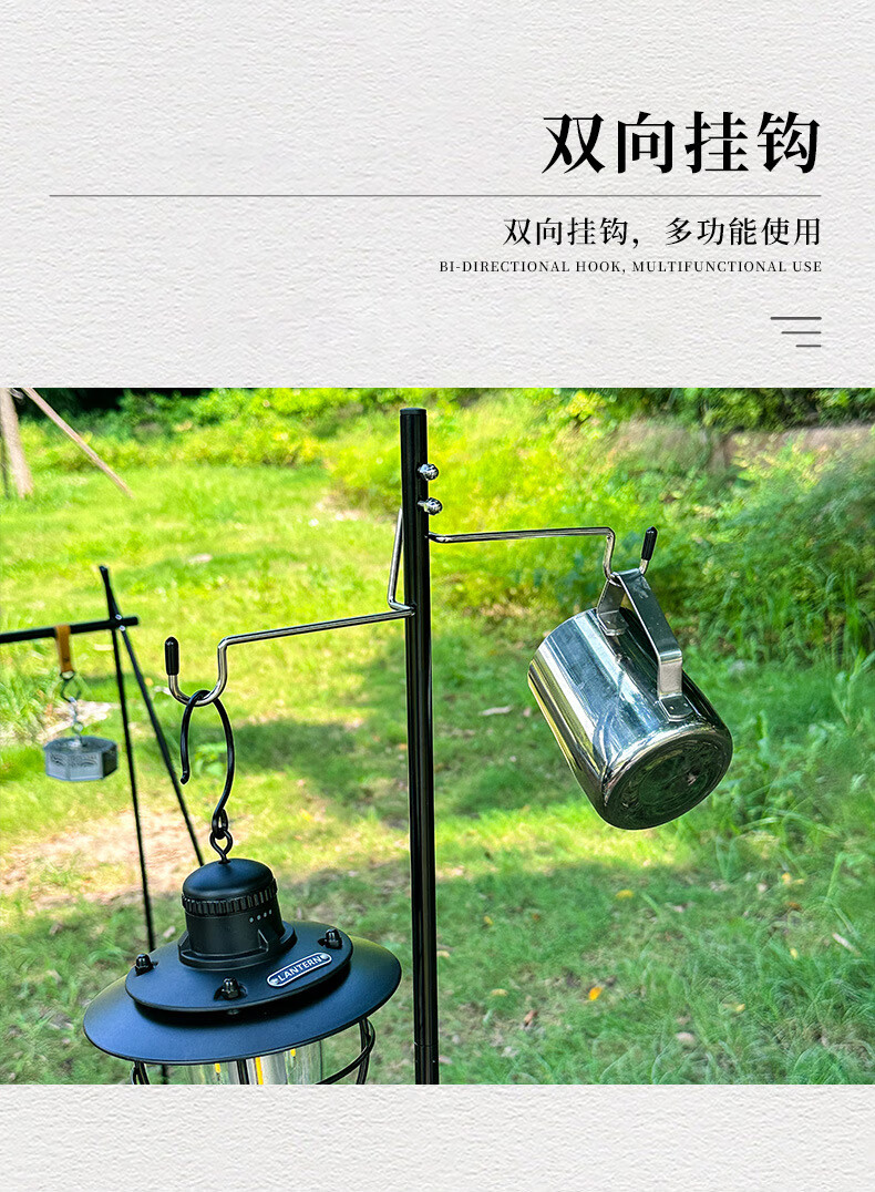 Guide Series铝合金户外灯架野露营折叠桌边灯杆支架伸缩杆挂小灯单钩挂灯野外 桌边二节单钩灯架-黑色