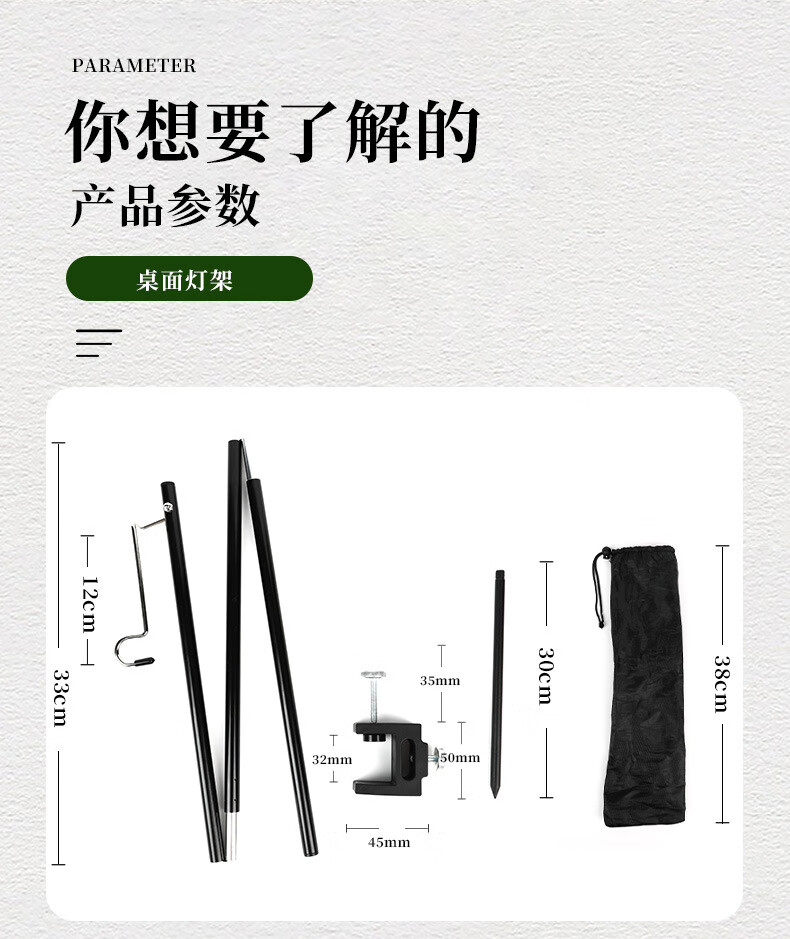 以前露营天黑吃晚饭做饭的时候,就是特别烦恼灯不方便放,放桌子上光线不好,在天幕外面吃又没有地方放,这个支架方便收纳,也方便架在桌子上,特别适用