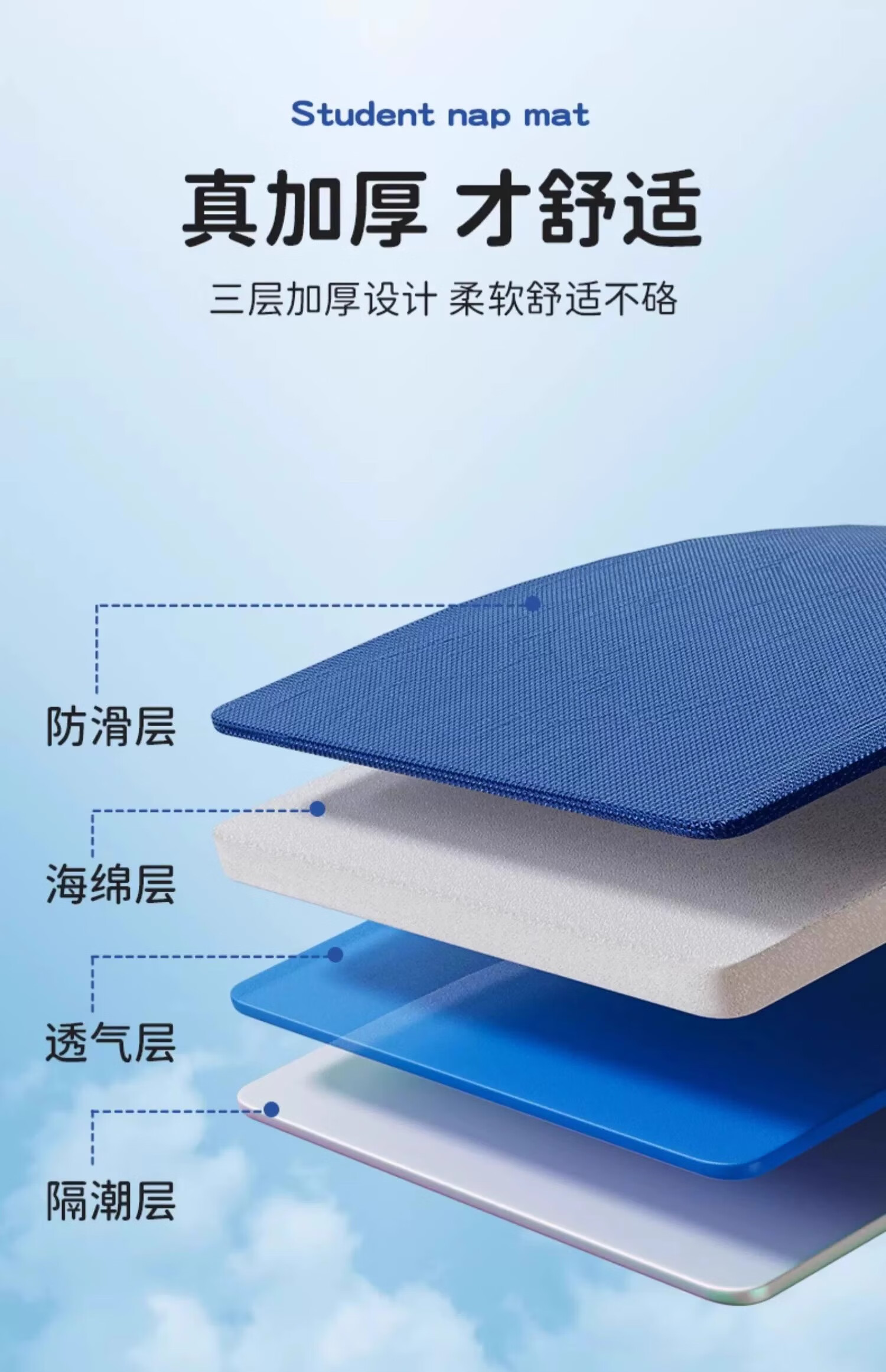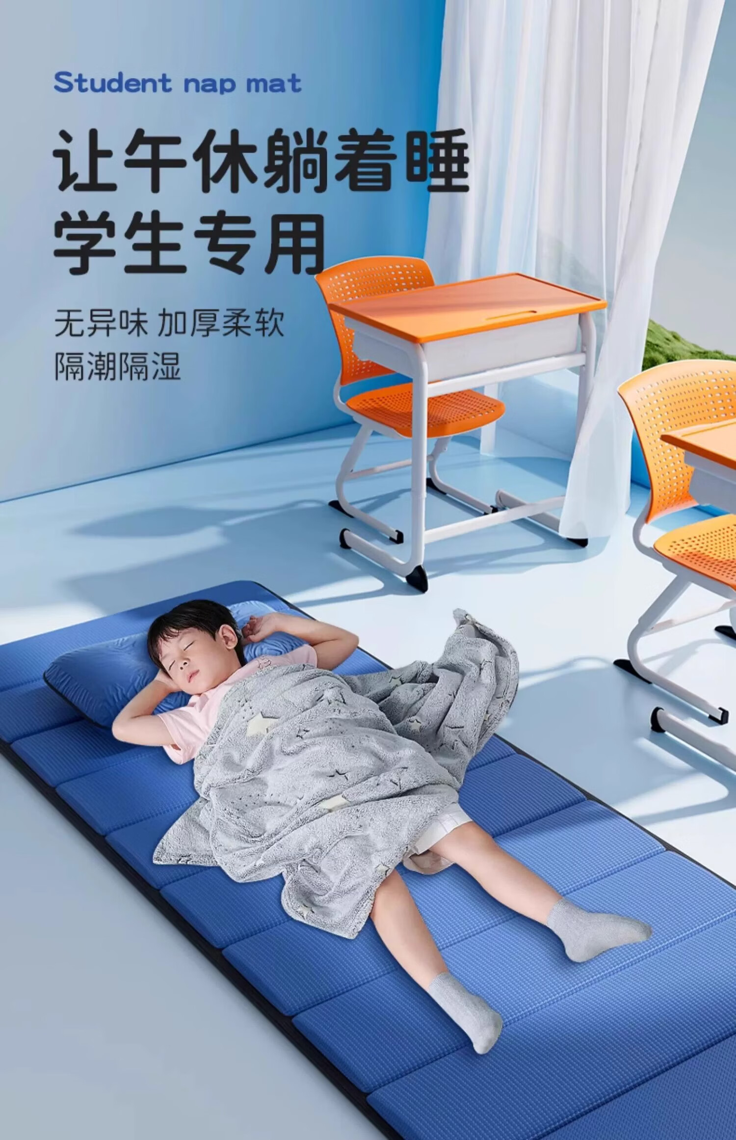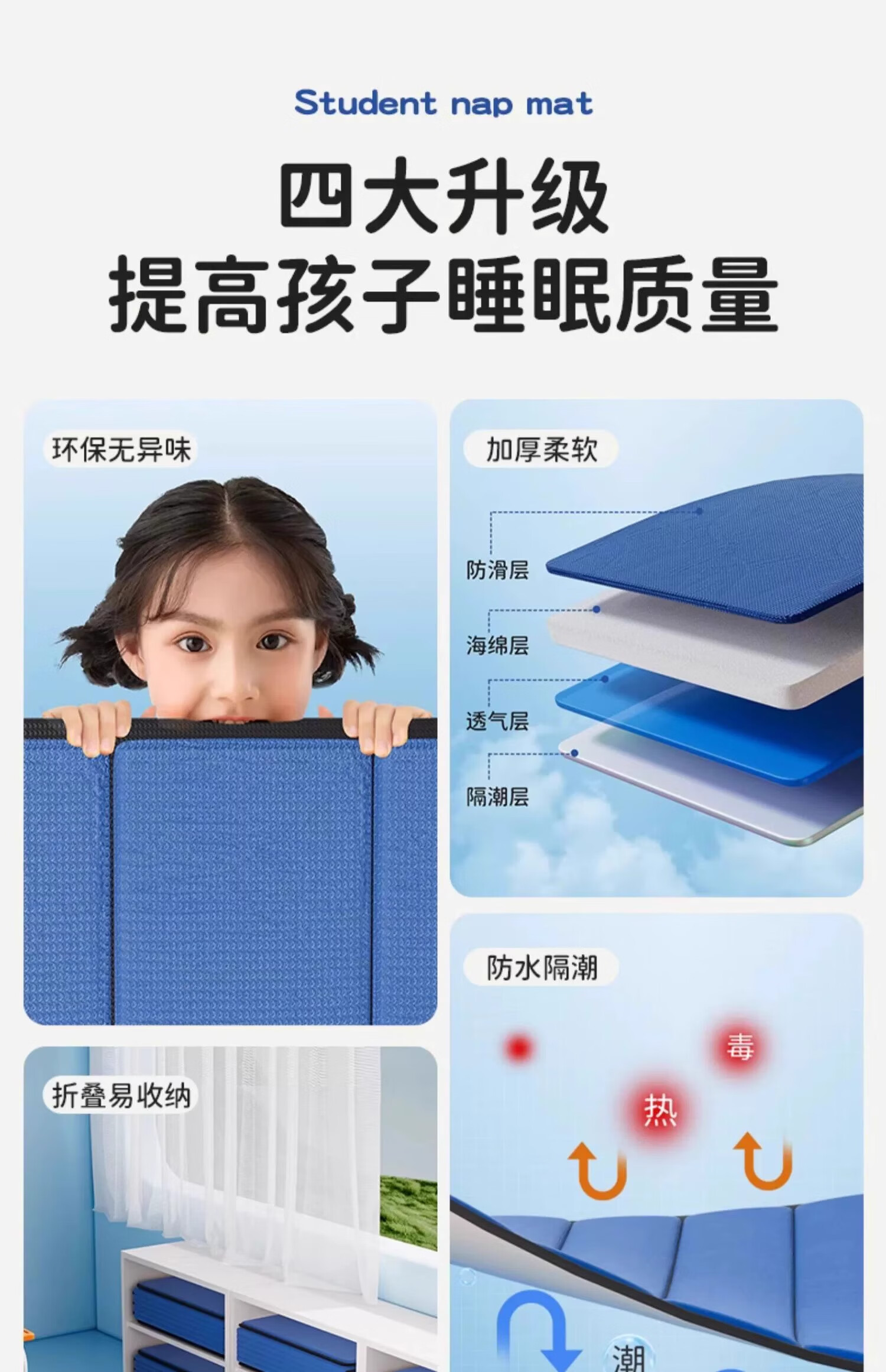 雷博小学生午休垫可睡觉坐加厚折叠教室瑜伽打地铺神器便携防潮湿户外 蓝海豚升级款厚20mm/长168*宽60cm 无规格