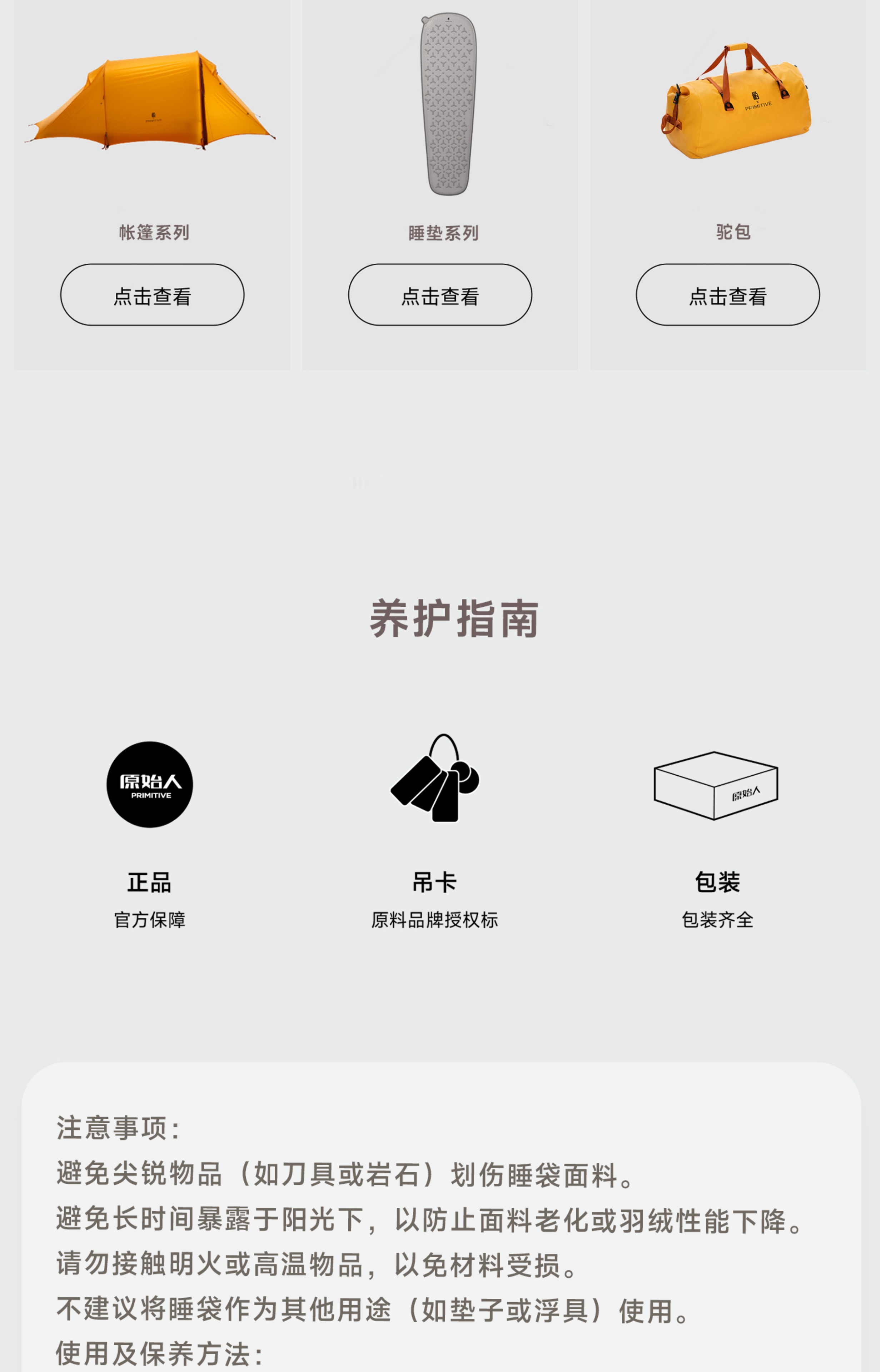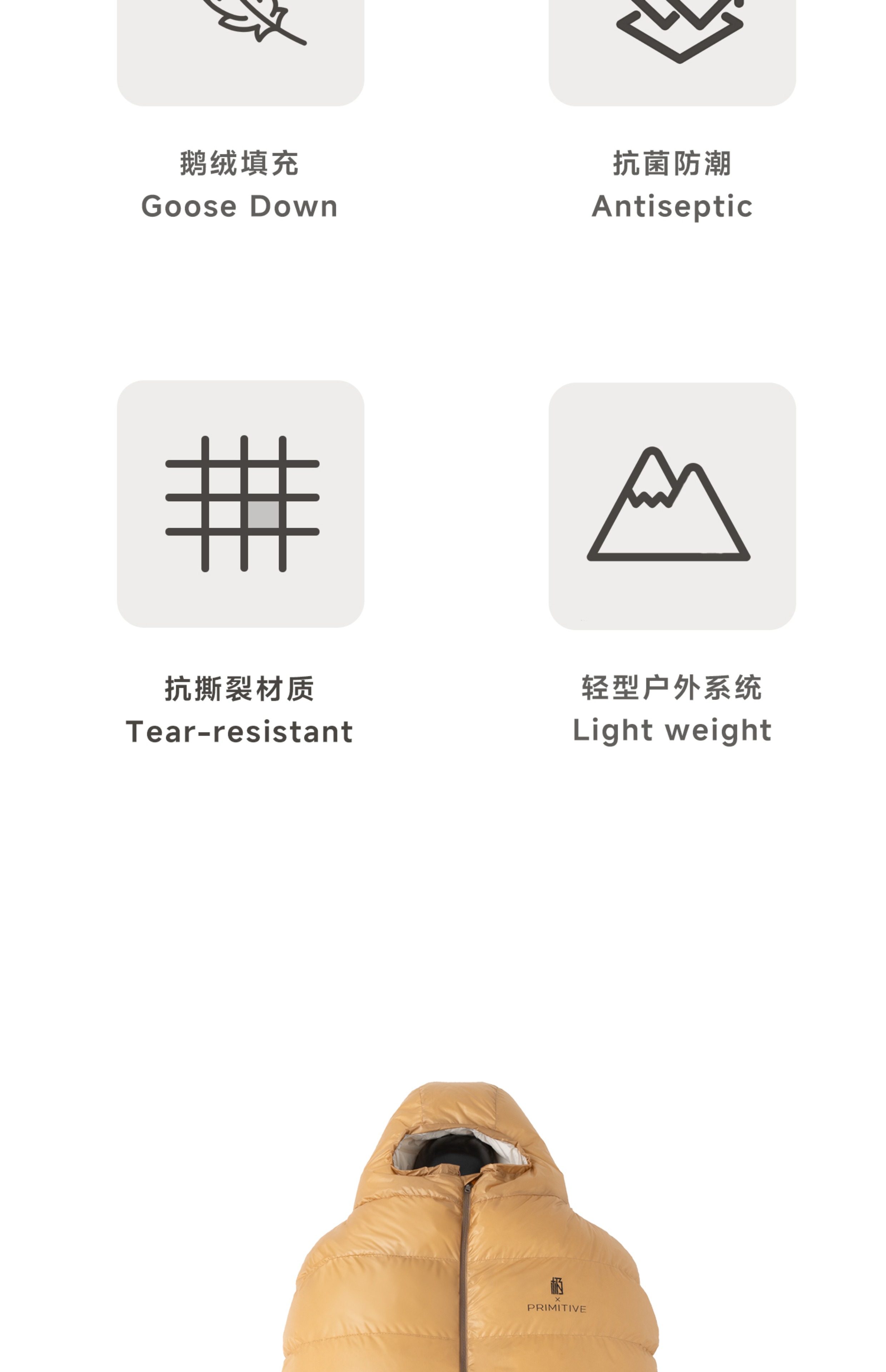 原始人(The Primitive)鹅绒睡袋成人户外露营过夜四季通用款轻量化徒步便携式羽绒被子 S码【罗曼白鹅绒】舒适温标7°C