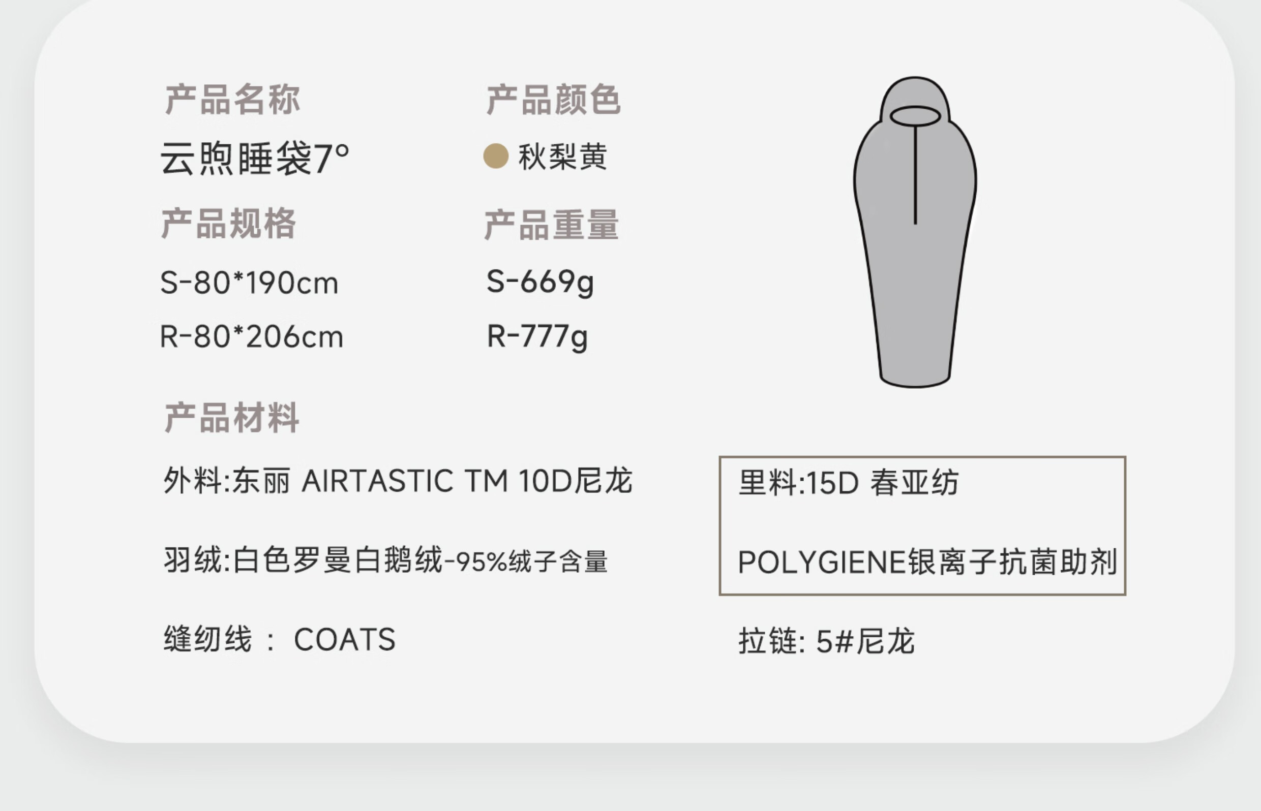 AST13睡袋-云煦秋梨黄7℃Goose Down S