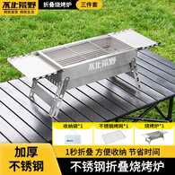 不止荒野碳烤炉烧烤炉烤肉碳烤炉户外便携式折叠露营小型家用烤肉架 002款【一体式碳烤炉】3件套