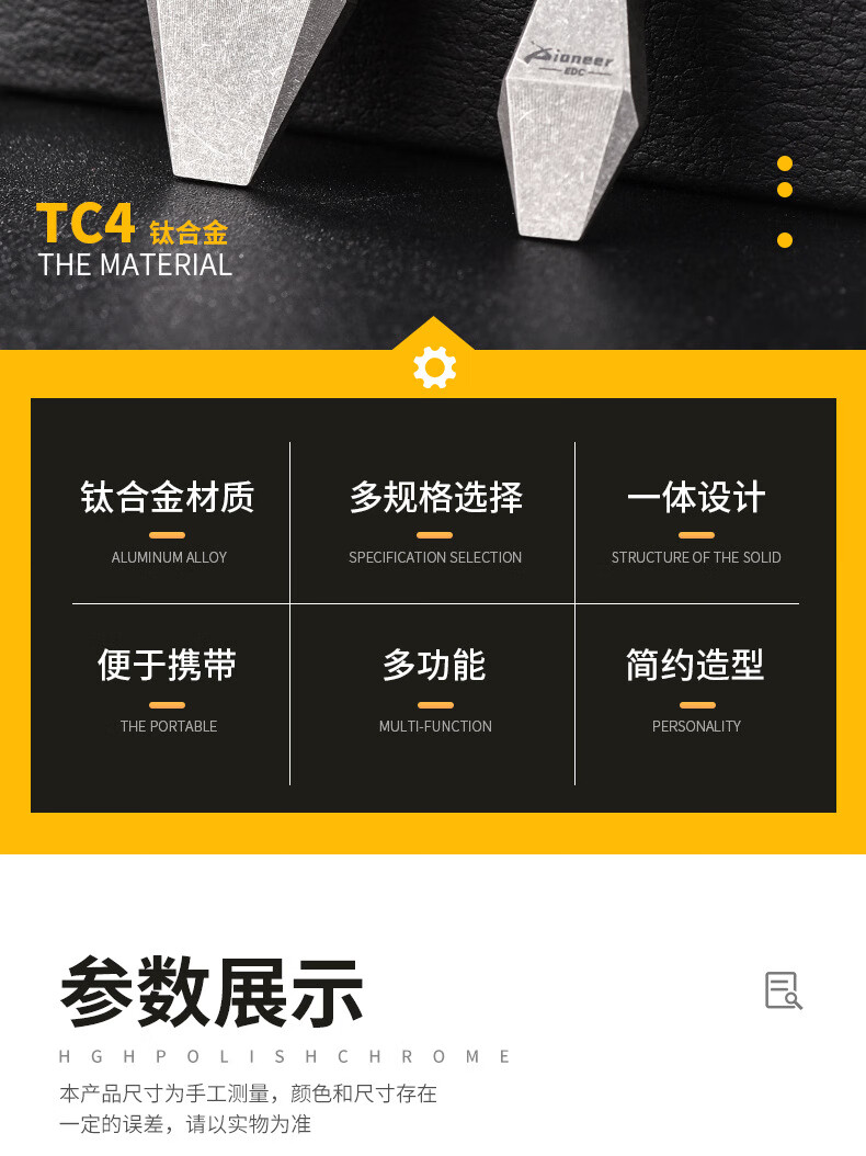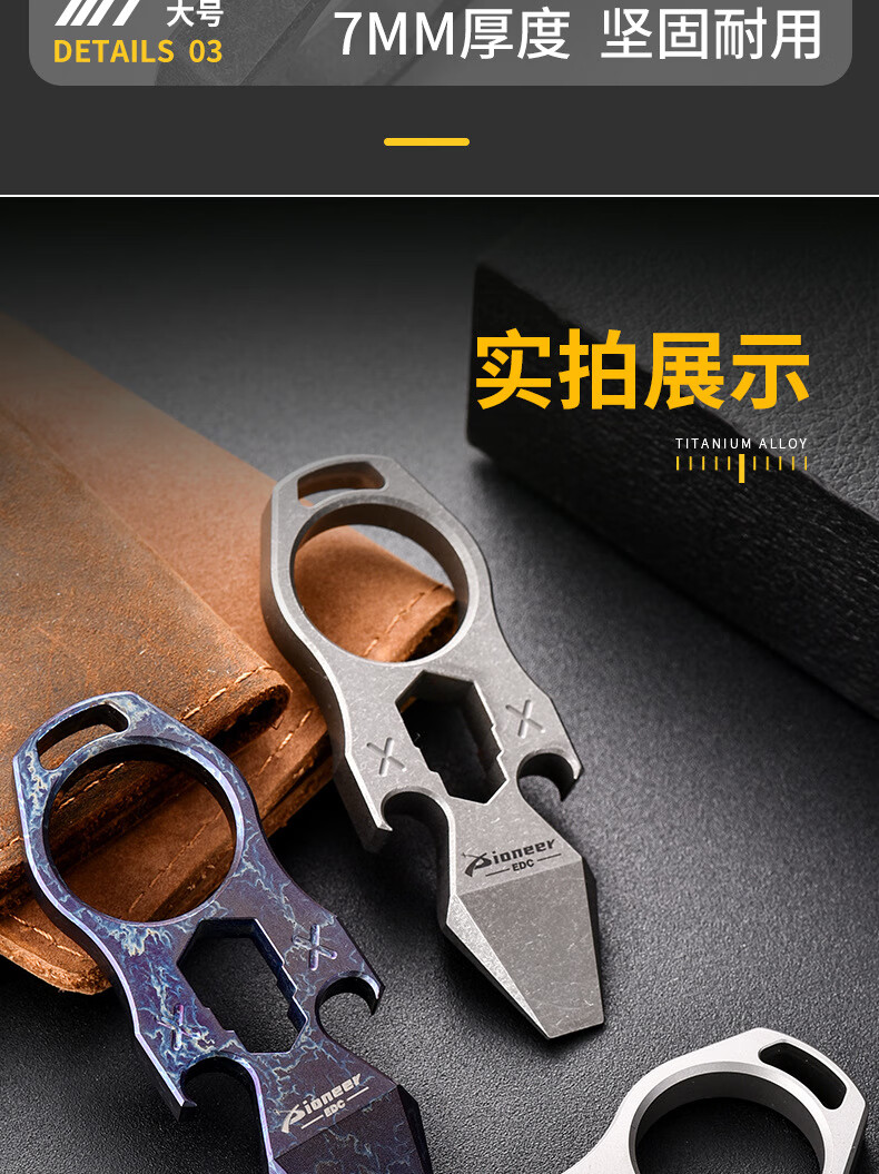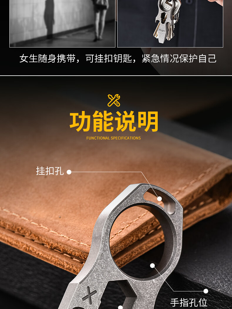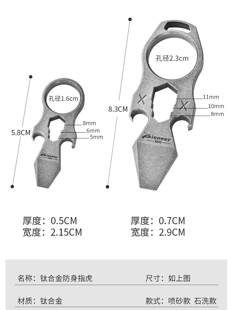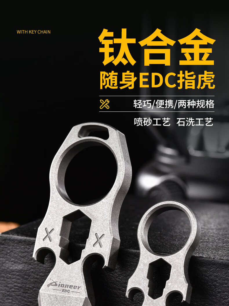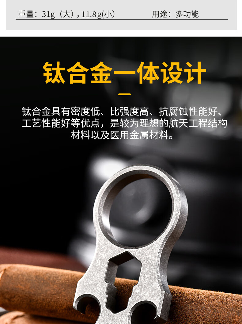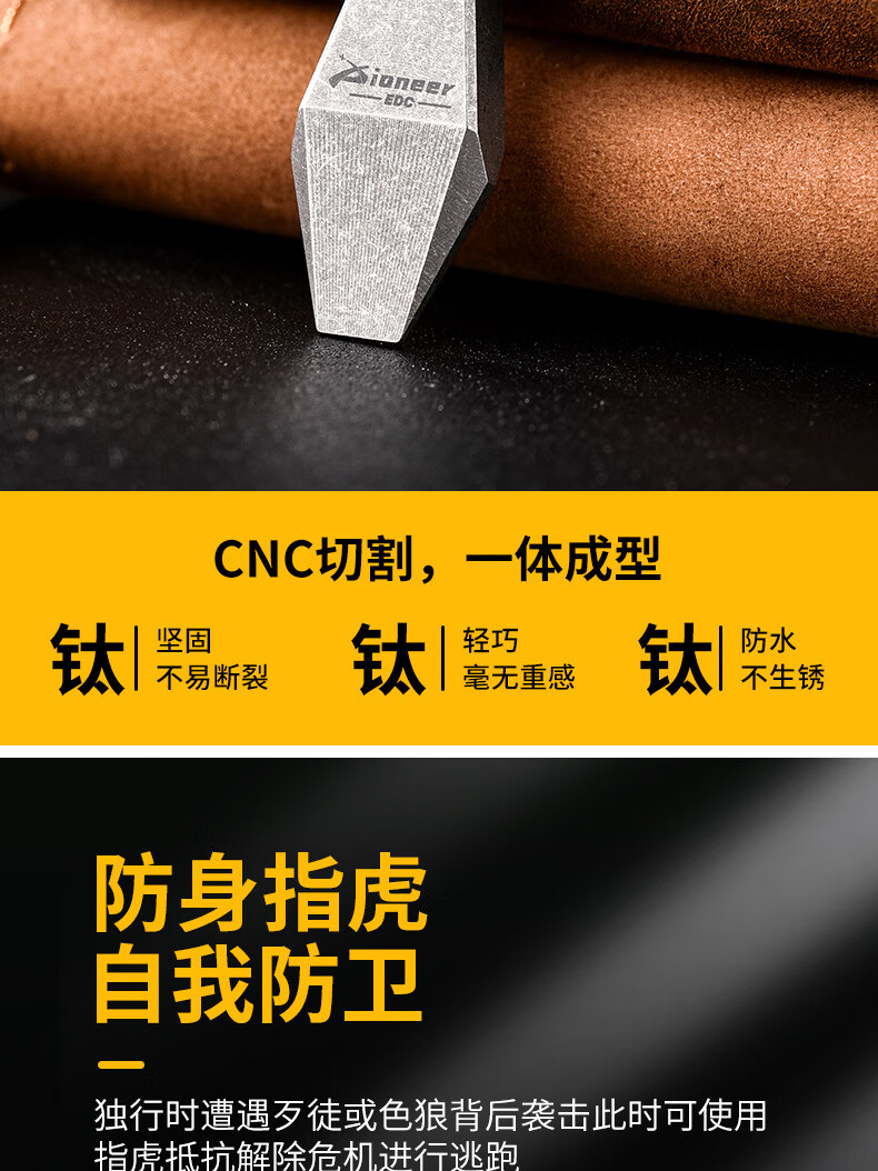 战术虎钛合金指虎CNC加厚设计户外EDC男女防身TC21单孔指戒指钛高端虎指手工匠活伞绳挂坠开瓶器