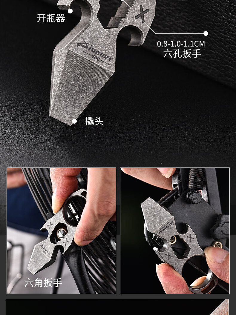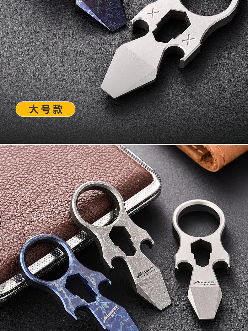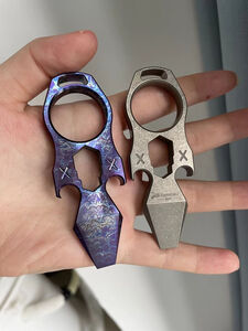 酷撼指虎钛合金防身多功能开瓶器开罐撬棍六角扳手EDC户外野营工具 钛合金闪电纹(小)