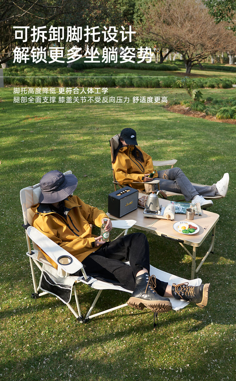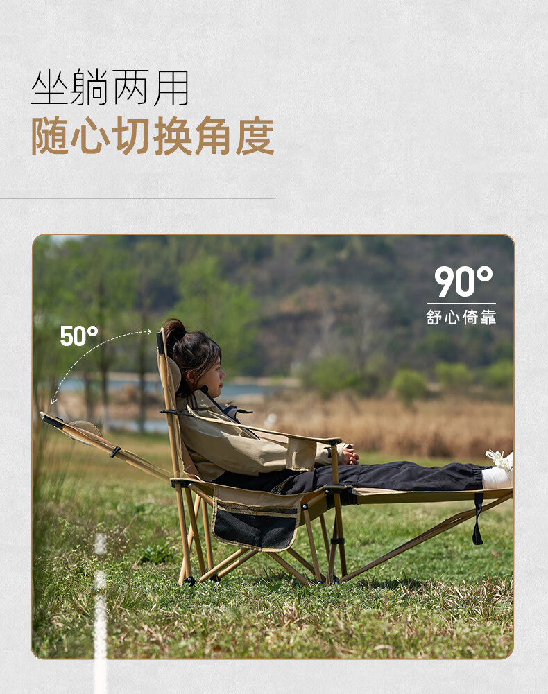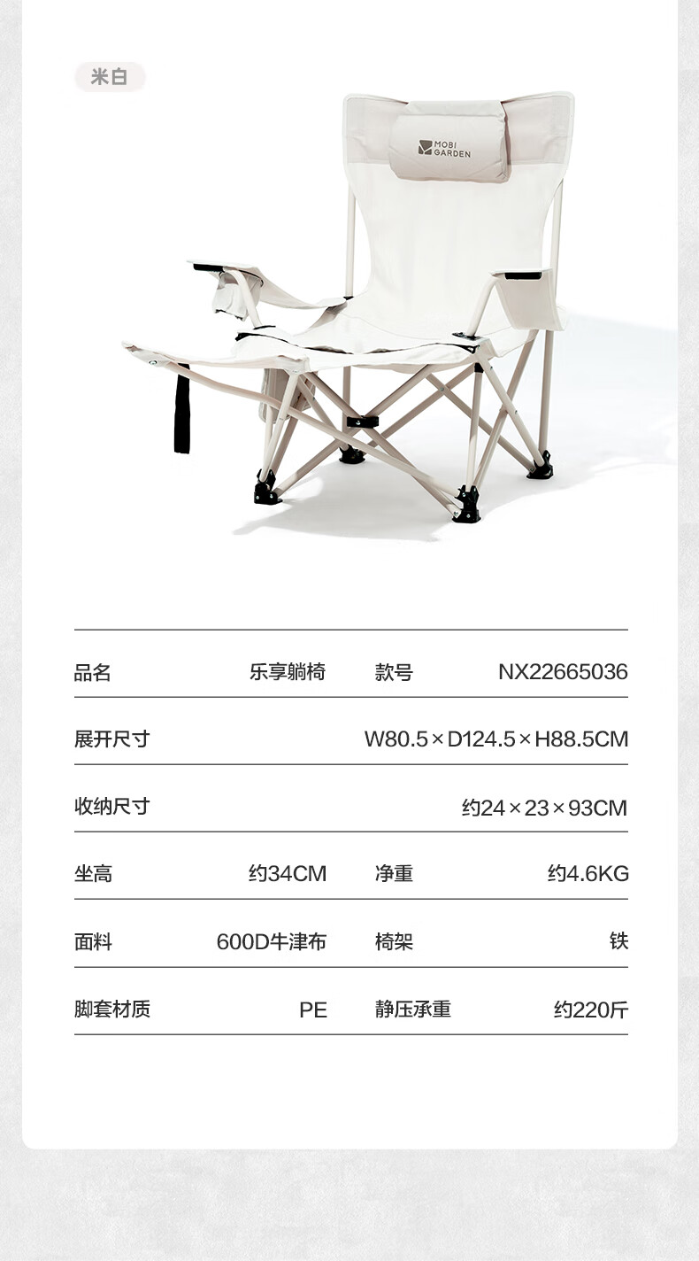 牧高笛(MOBIGARDEN)折叠躺椅户外露营便携超轻坐躺两用凳子休闲椅子可调节乐享 米白 乐享躺椅
