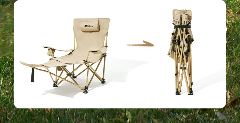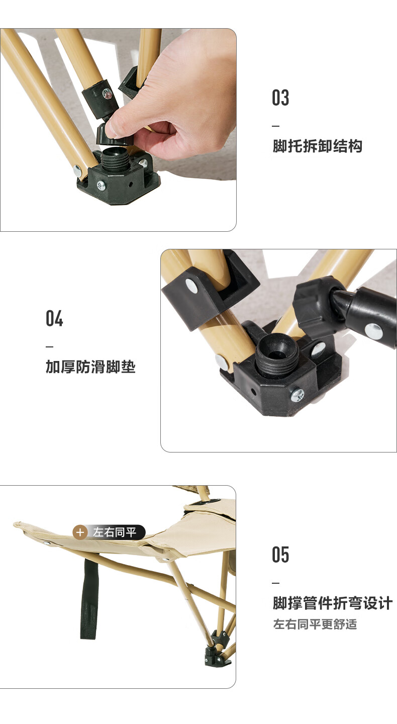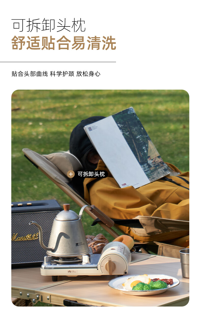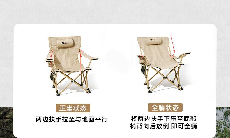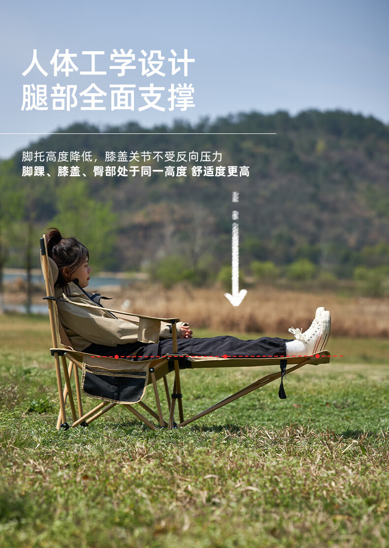 牧高笛(MOBIGARDEN)折叠躺椅户外露营便携超轻坐躺两用凳子休闲椅子可调节乐享 米白 乐享躺椅