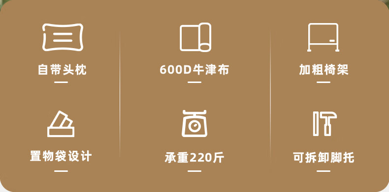产品做工用料都还不错。至少能用的住。收纳方便。户外休息家里坐坐都行。主要是能满足躺一下的需求。但是容易下陷往一起折。设计原因