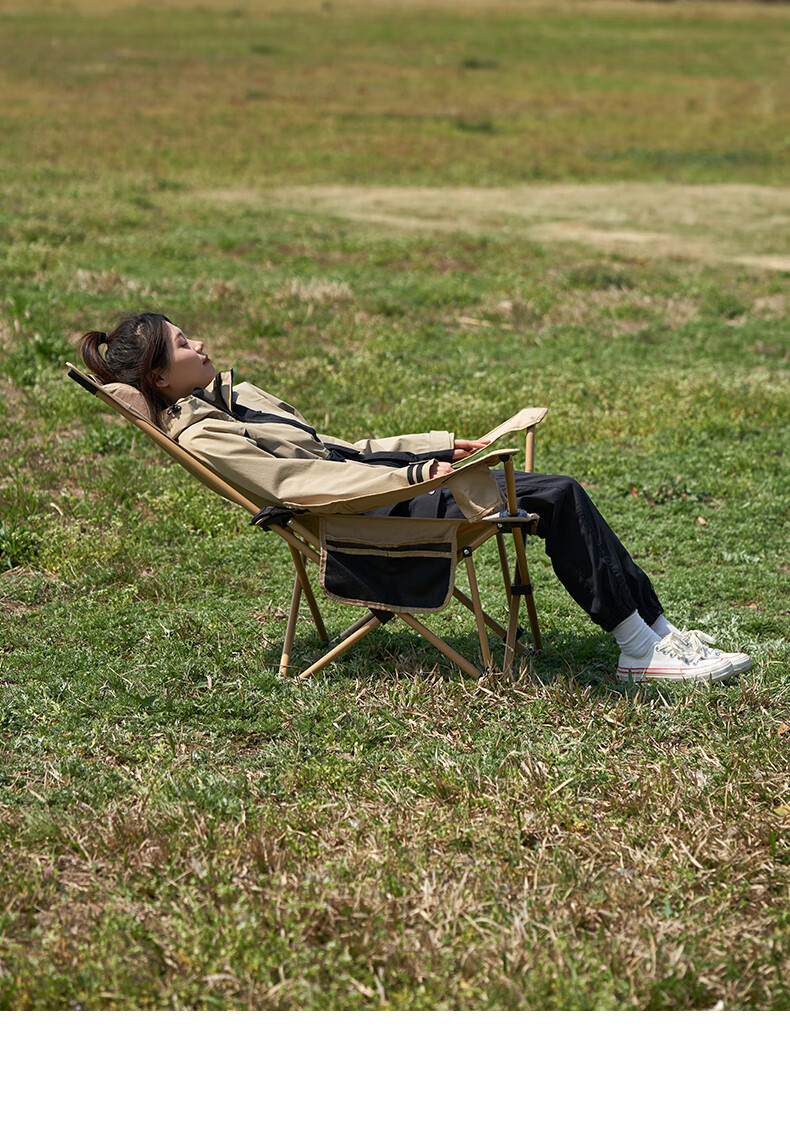 Naturehike挪客 户外折叠躺椅 午休轻便沙滩休闲椅露营钓鱼写生铝合金靠背椅 卡其色