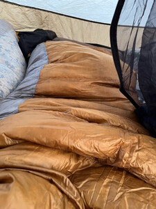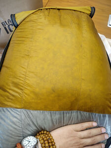 这个睡袋我前后买了两次但是都是退了,因为心疼价格,一直用的是B700.但是这款体积小啊,放在背包里不占地方,而且重量很轻,体积只有B700的一半。心里一直念念不忘这款睡袋,终于卖了b700.选择了这款睡袋,轻量化露营的好物件。