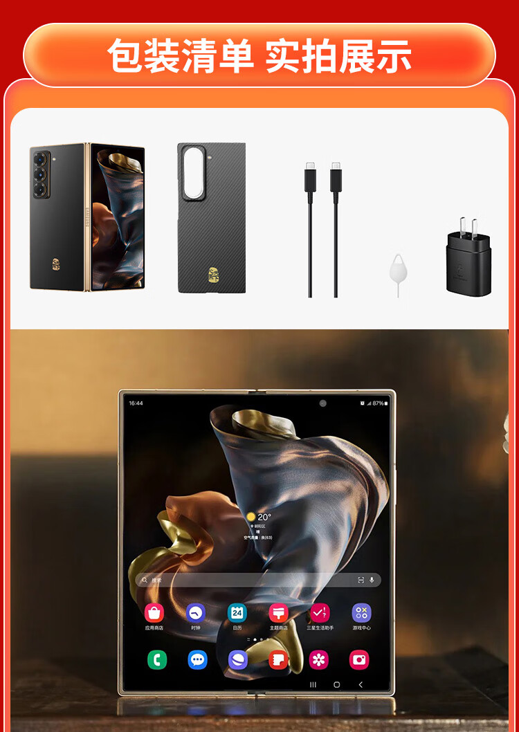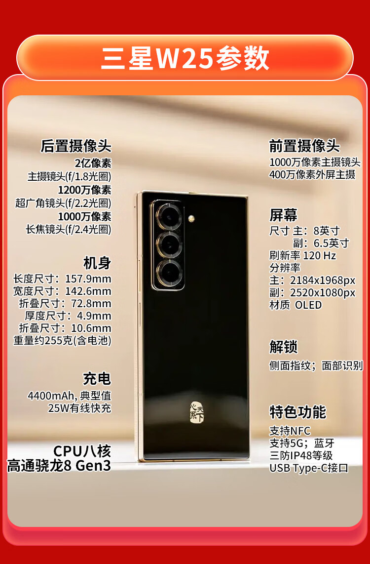三星(SAMSUNG)w25心系天下 陶瓷2亿像素视觉影像Galaxy折叠屏三星 w25手机 展机 陶瓷黑16+1TB 电子保卡已注册+全国联保
