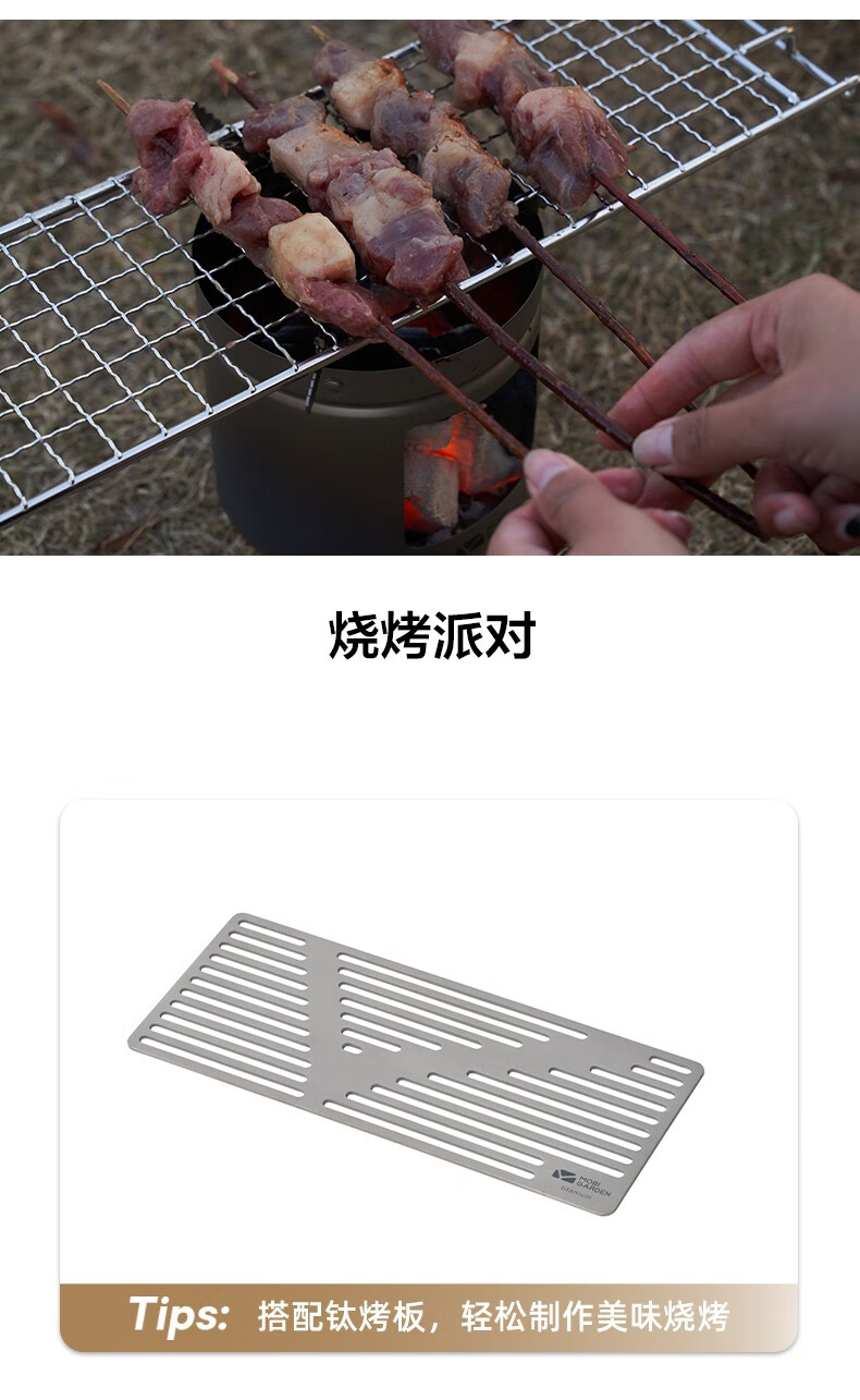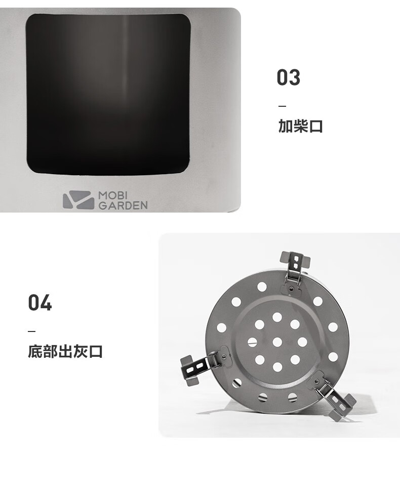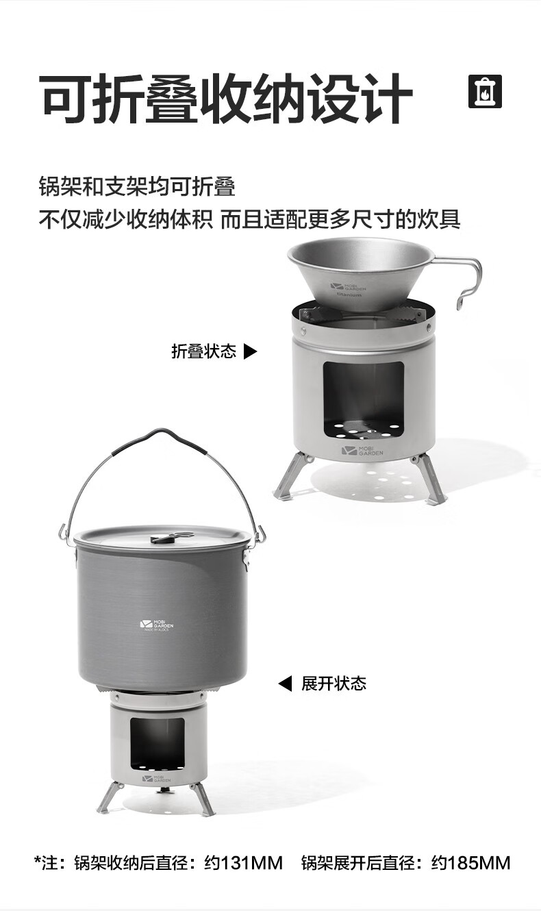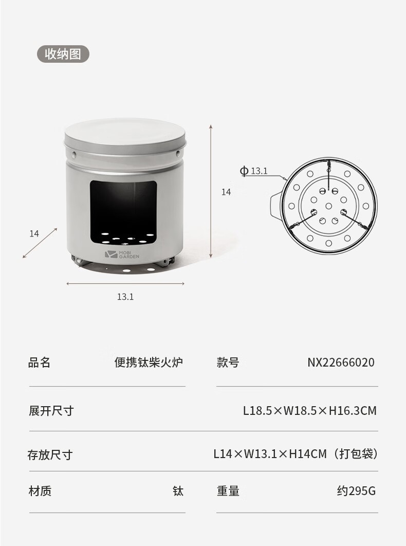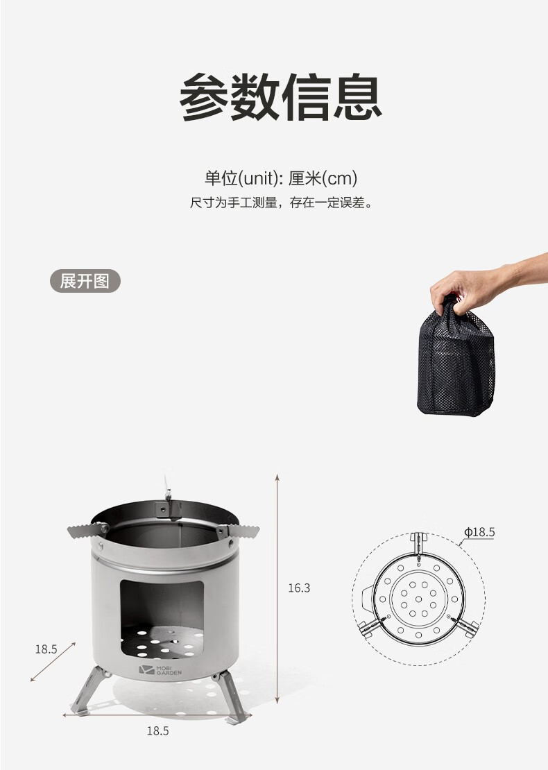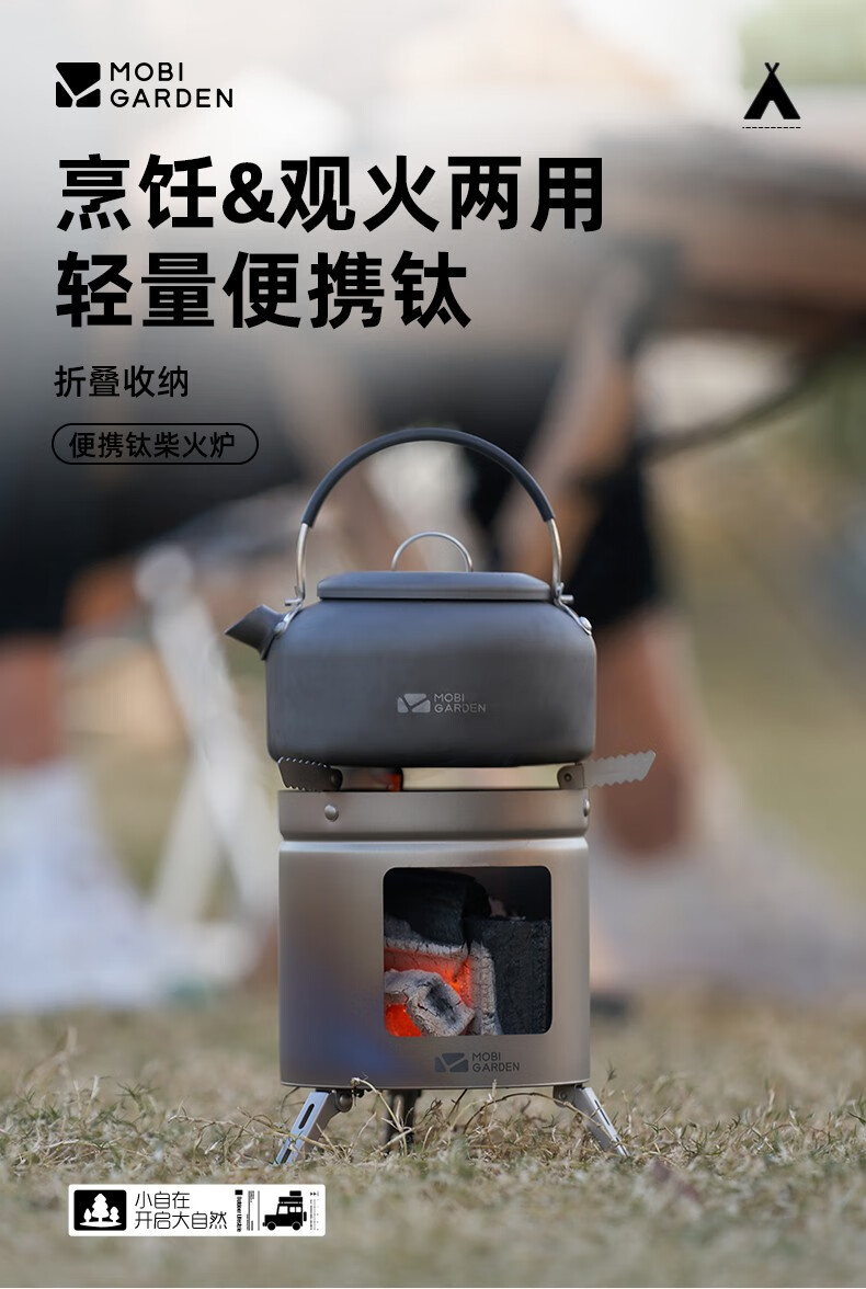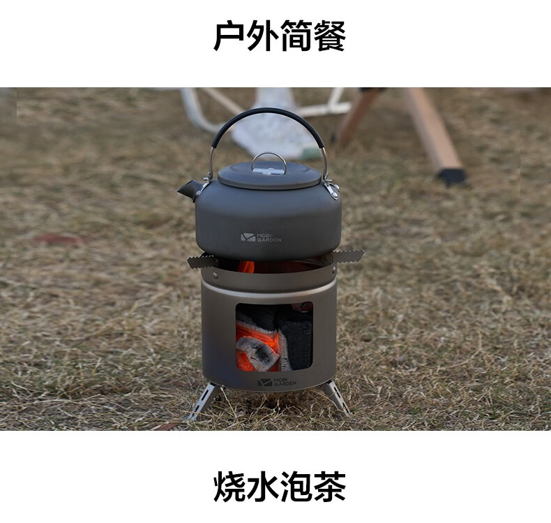 牧高笛(MOBIGARDEN)烧柴炉 户外露营野炊便携烧柴炉移动钛碳火炉燎炎 钛色
