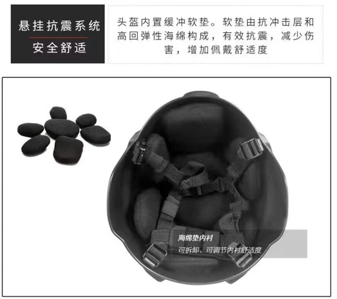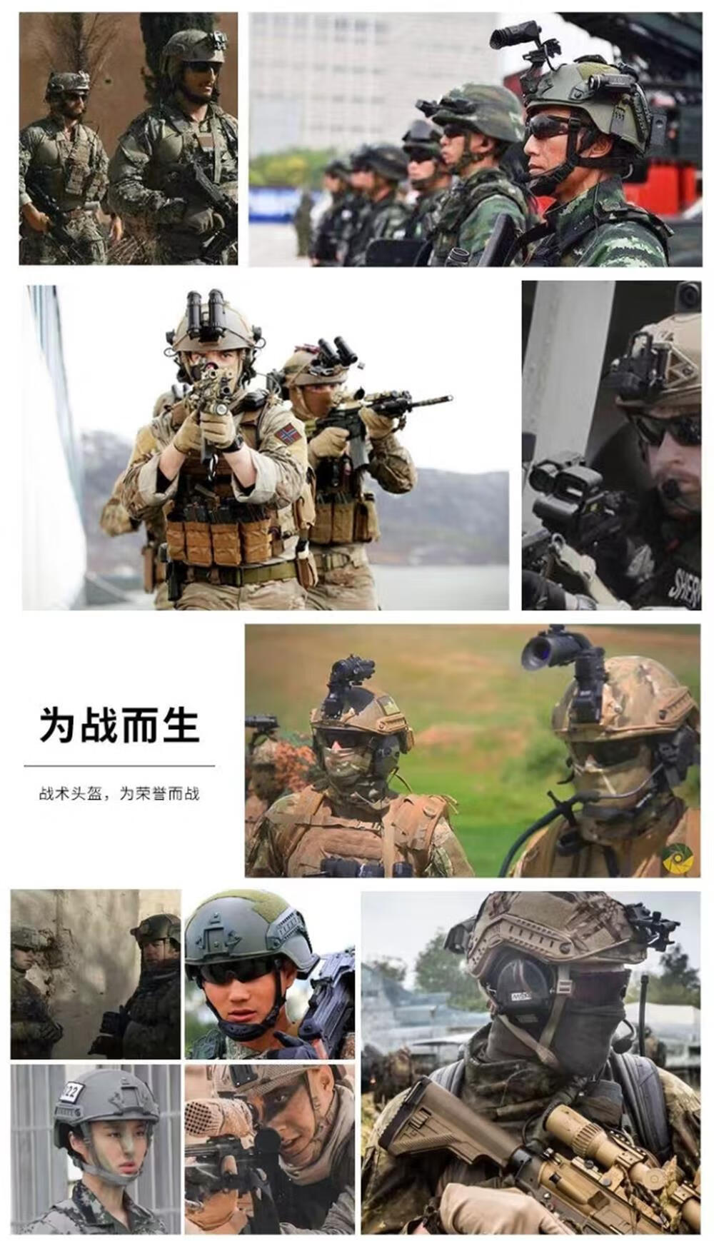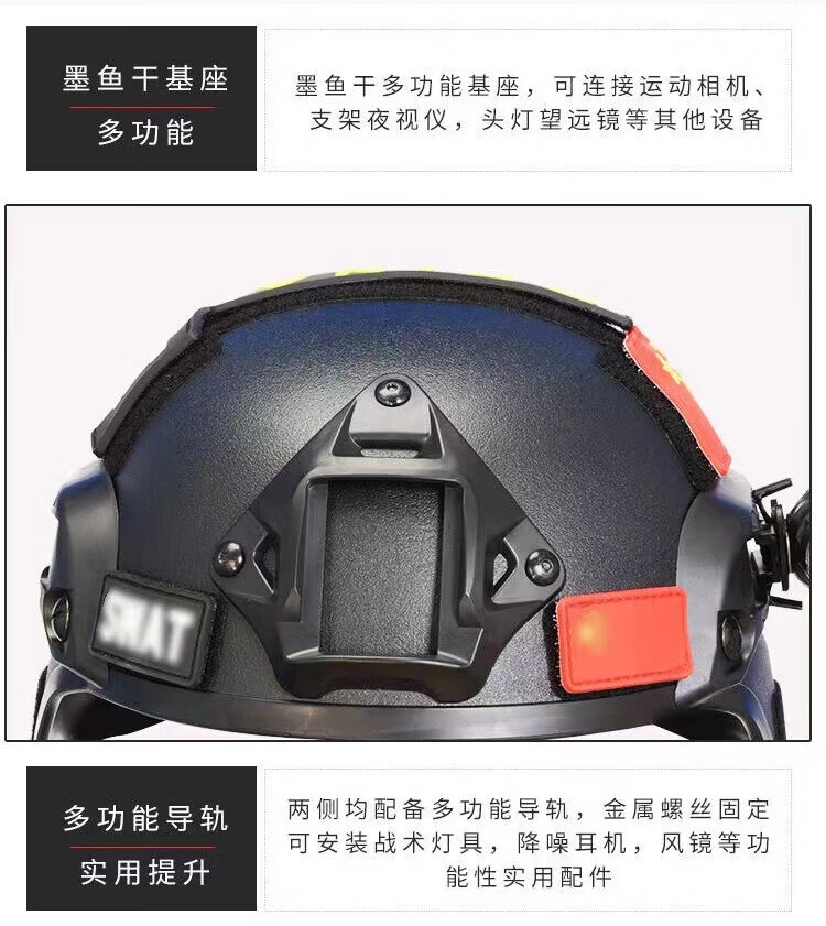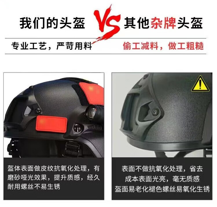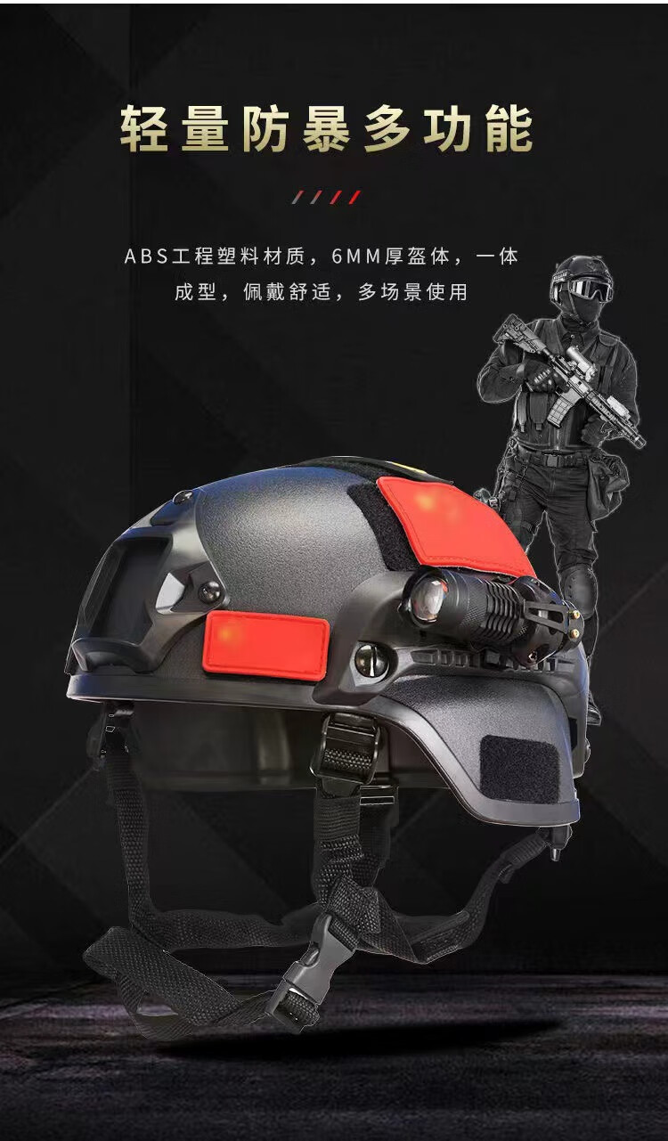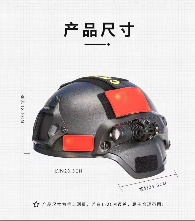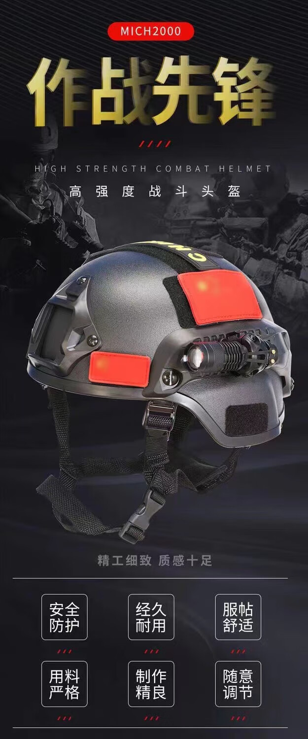 捷天下行动版头盔 轻量化野外CS导轨头盔 军迷头盔米奇战术头盔执勤头盔 黑色头盔+电筒夹+手电+6个贴