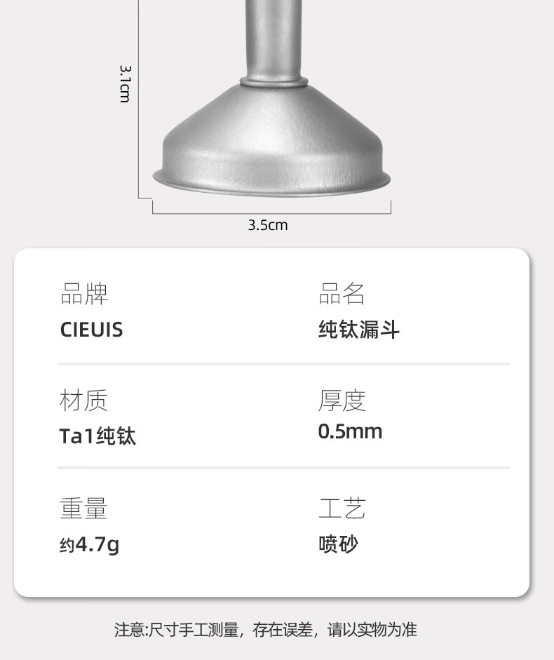 CIEUIS纯钛漏斗小口径家用食品级迷你小酒漏斗便携式金属小口滤斗 纯钛漏斗 Ta1纯钛 纯钛漏斗 Ta1纯钛