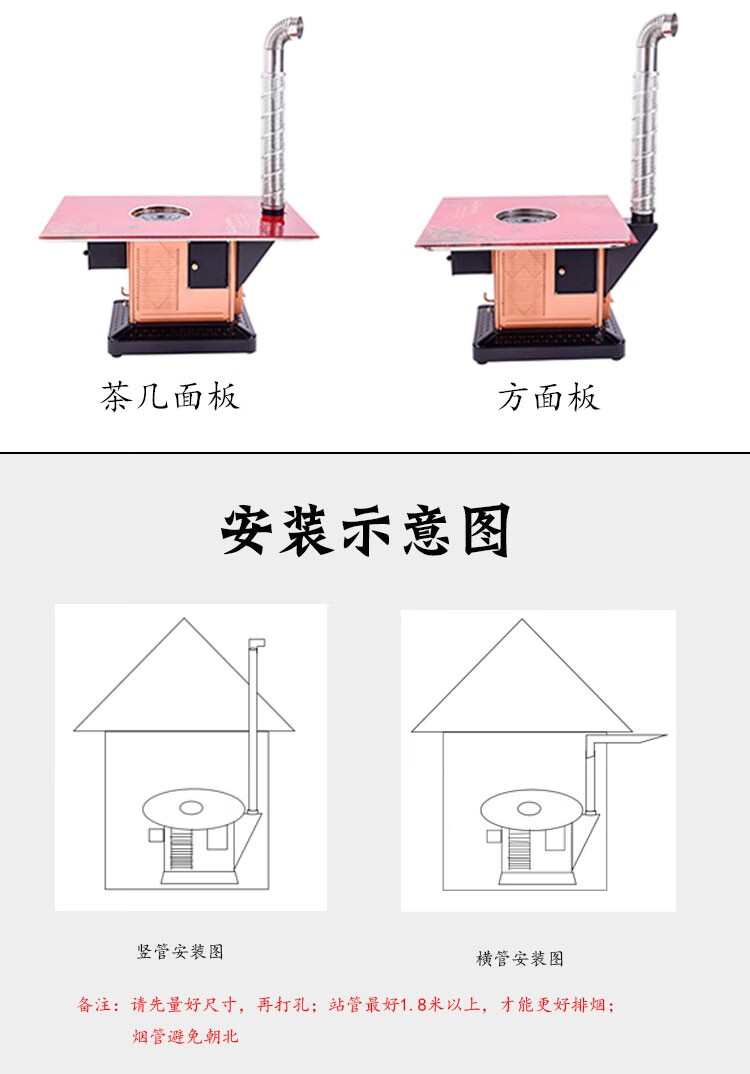 璞灶旺回风炉农村家用取暖柴火炉煤火炉柴煤两用炉多功能烤火桌节能取暖 0.8米钢化玻璃桌面 柴煤两用炉