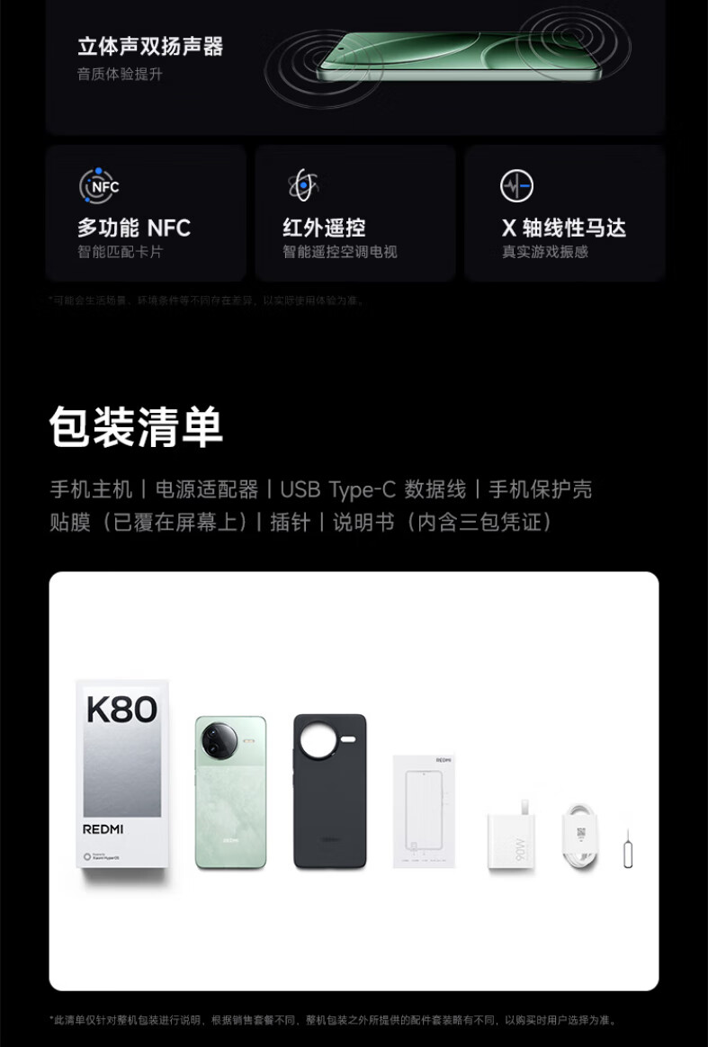 小米(MI)【国家补贴】REDMI 红米K80 新品5G手机 第三代骁龙8 6550mAh大电池长续航 2K屏 玄夜黑 16GB+512GB