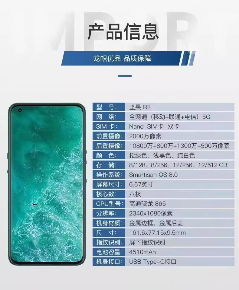 锤子(smartisan)SMARTISAN/锤子 R2锤子双5G手机锤子骁龙865手机全屏 坚果R2绿色 12+256_标配_中国大陆
