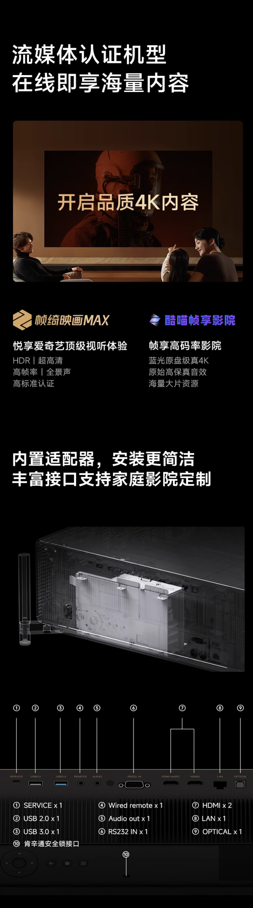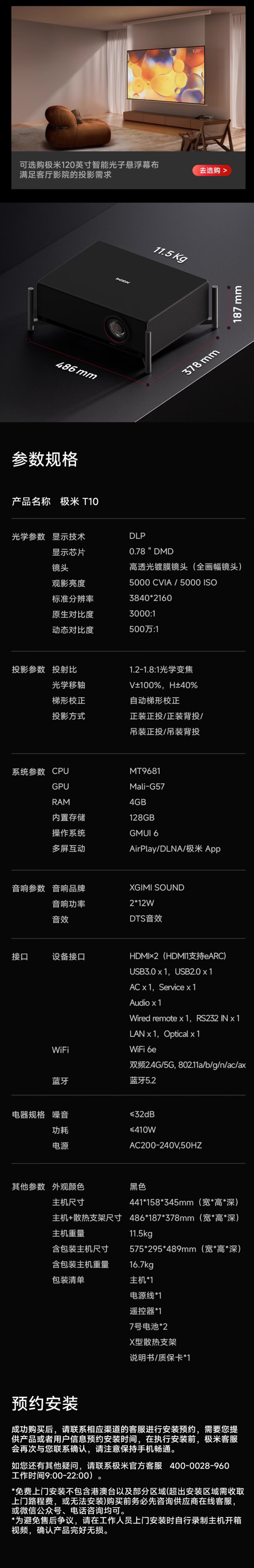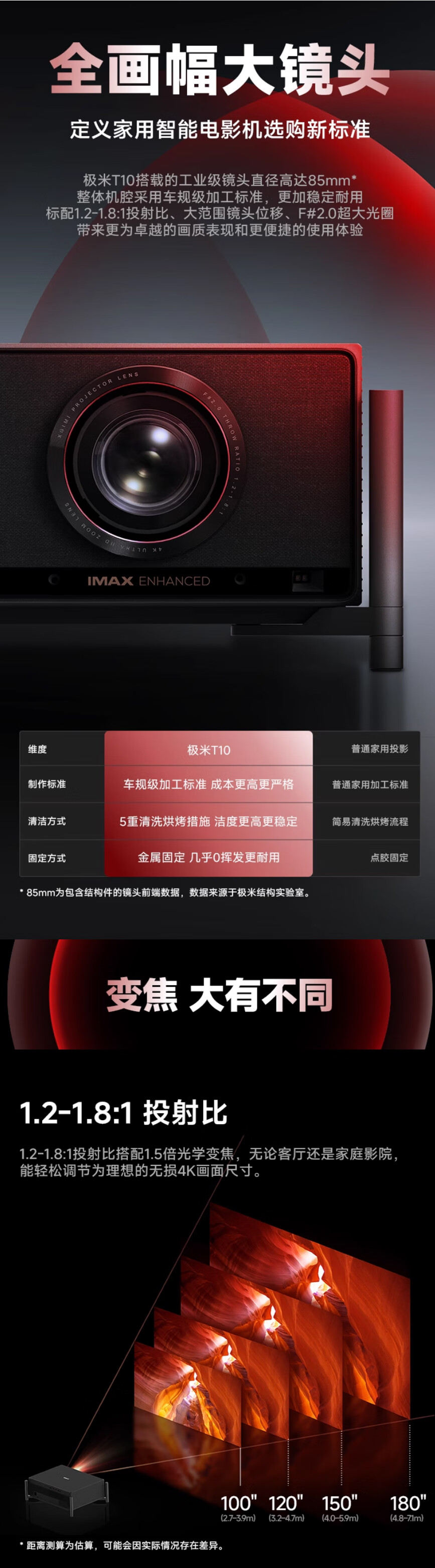极米T10 激光电影机超高亮度超高动态对比度超高色准4K超清家用投影仪 T10 单机【咨询客服下单更优惠】