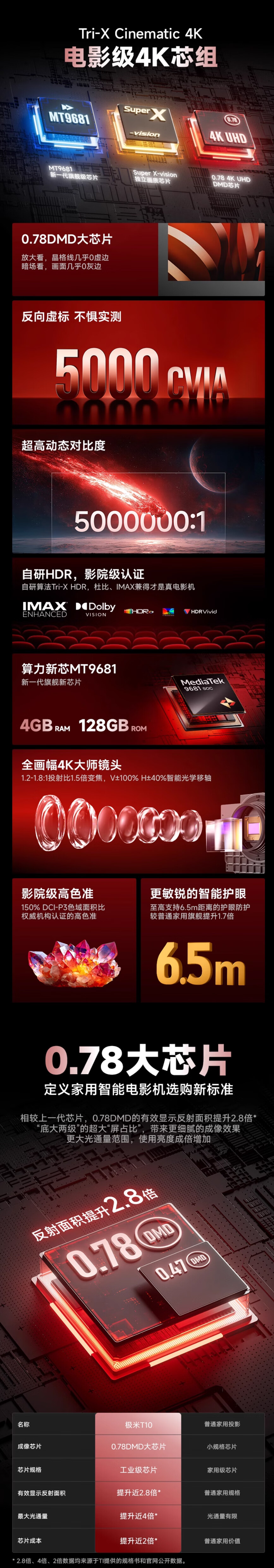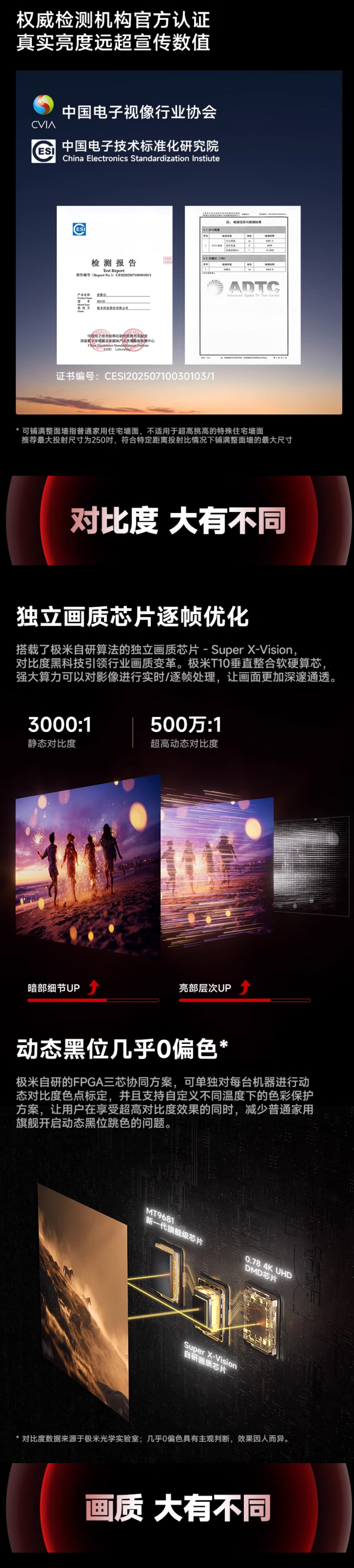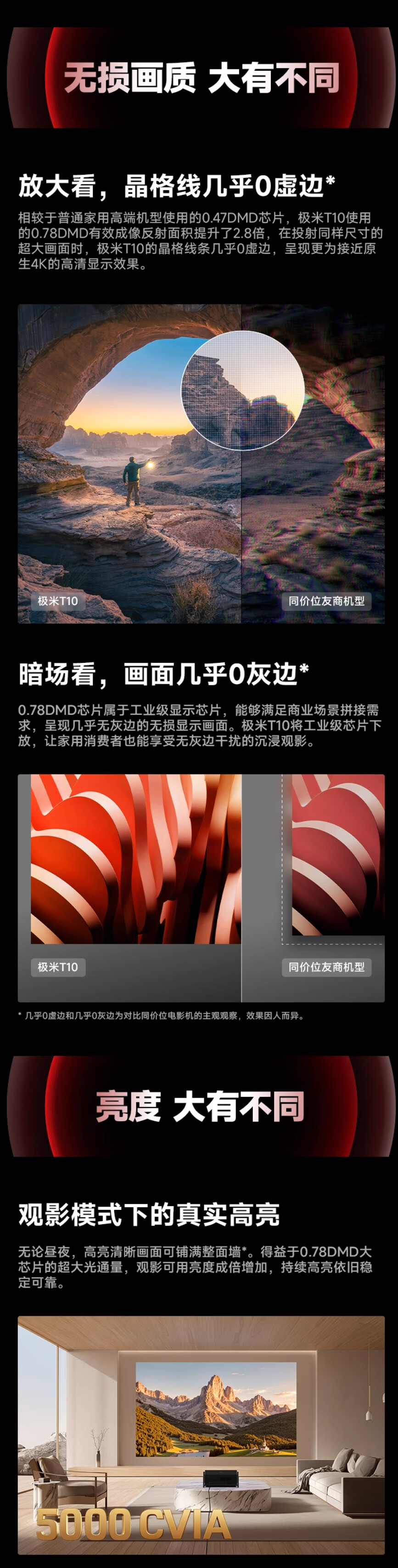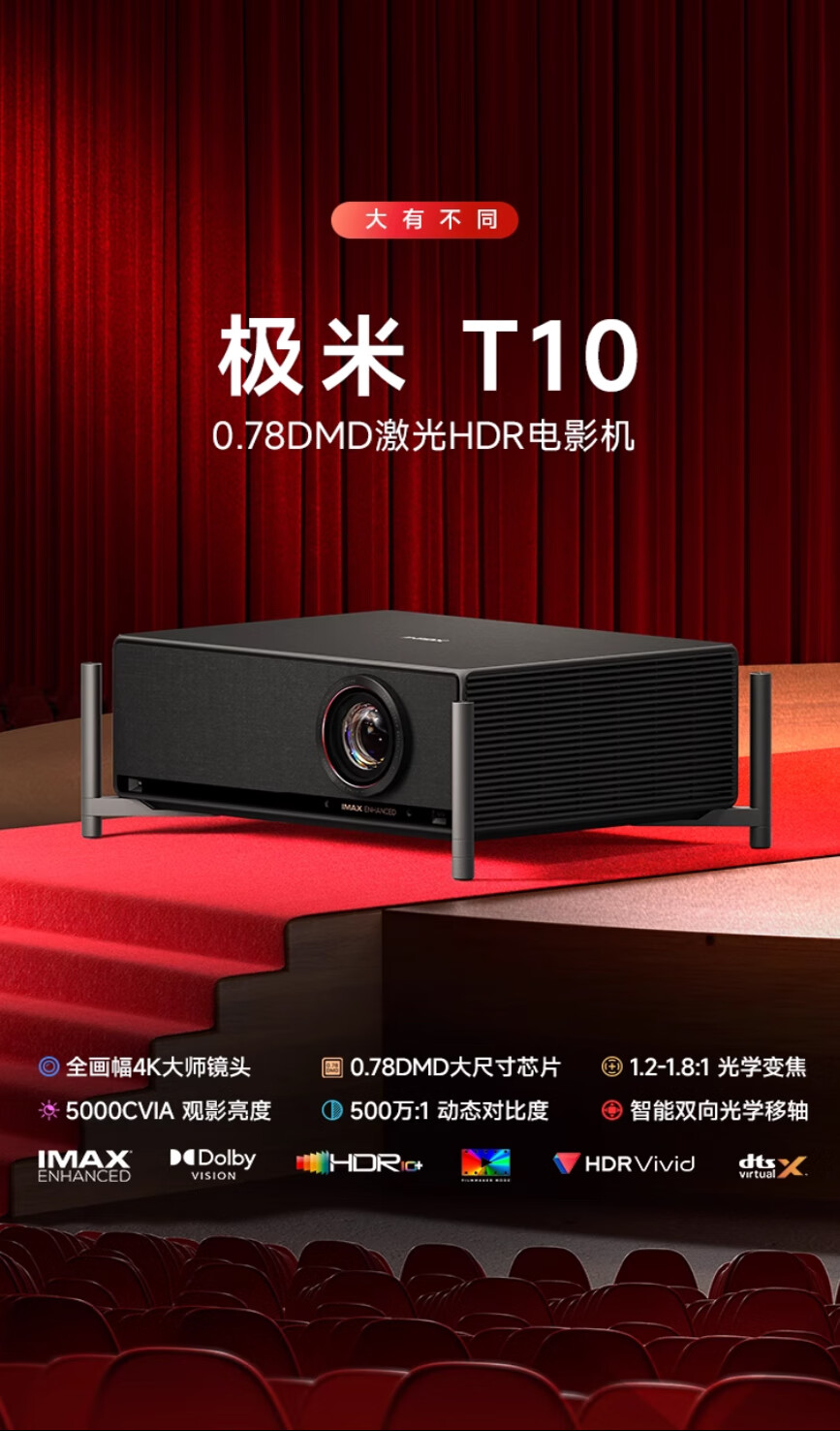 极米T10 0.78"DMD激光HDR电影机 5000 CVIA 超高亮度超高动态对比度超高色准 4K超清家用智能投影仪 极米T10