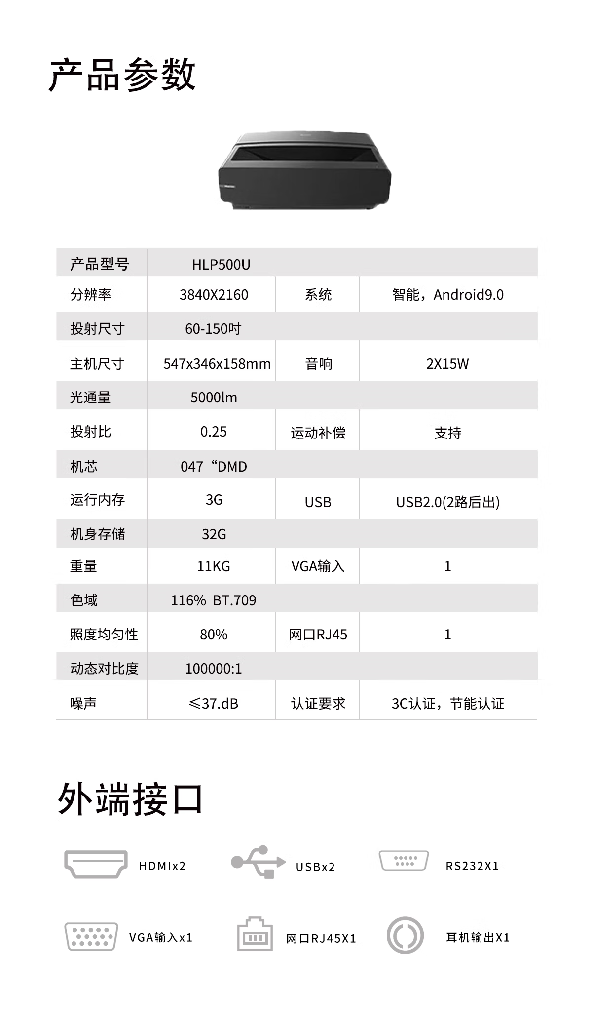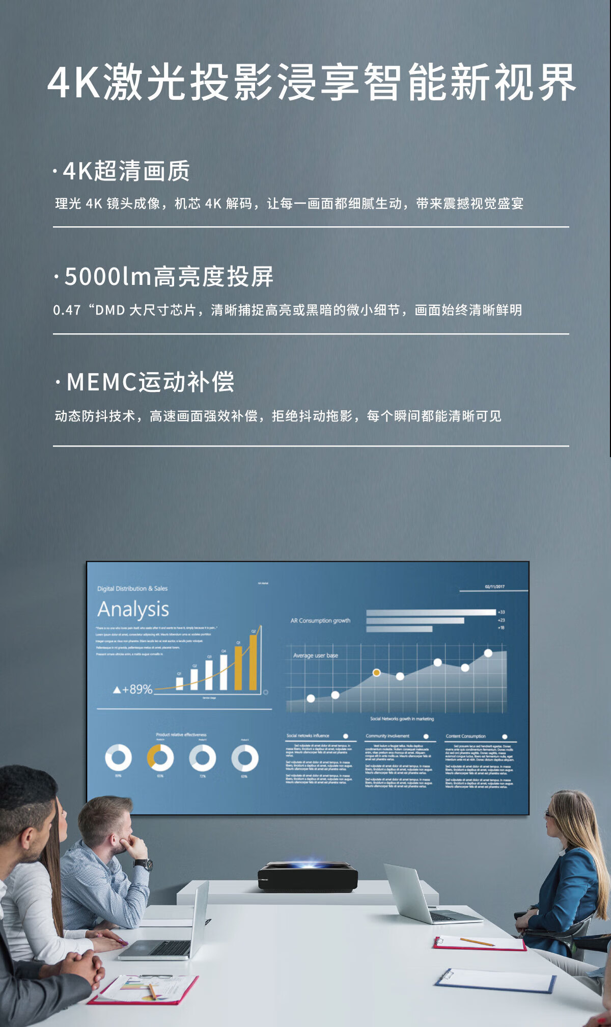 飞利浦(PHILIPS)U5激光电视UHD真4k超清智能家用裸眼3d功能家庭影院100吋120吋护眼防眩光镭射投影一体机 U5+150吋菲涅尔硬屏【需定制】