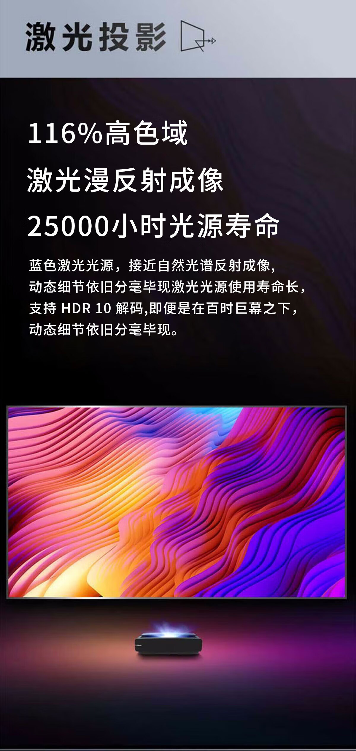小米激光影院2超短焦激光电视超高清4K家用客厅智能100寸120寸投影机 小米影院2+菲涅尔100寸硬屏 官方标配