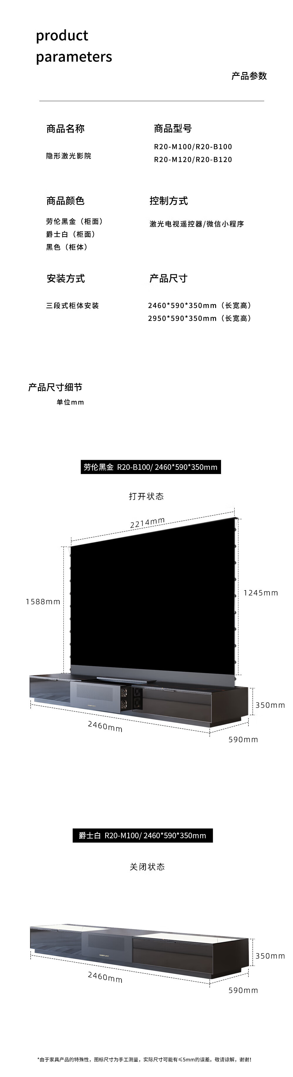 舜合 R20隐形激光影院瑞卡丹顿智能隐藏电动升降卷曲屏激光电视一体机黑柵光学屏超高清4k影院激光电视 120寸卷曲屏+白柜体(不含激光电视)