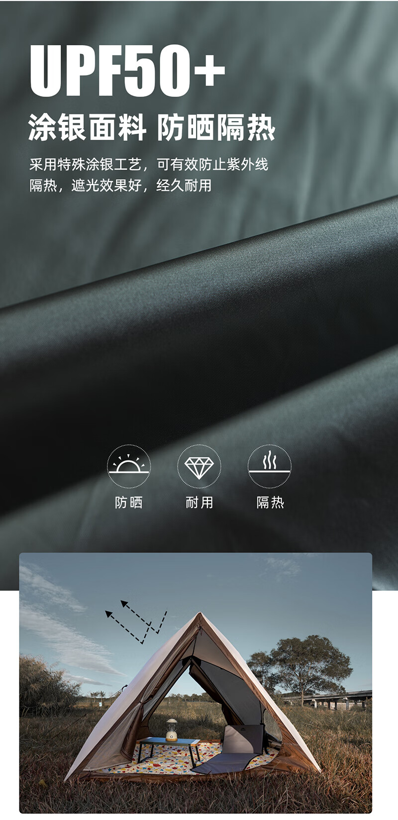 何佳功新燕尾天幕户外露营懒人免安装加厚黑胶防晒遮阳防雨速搭天幕 速搭型12㎡银胶天幕3.3*3.6米2-4人(1